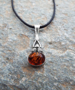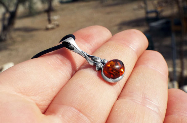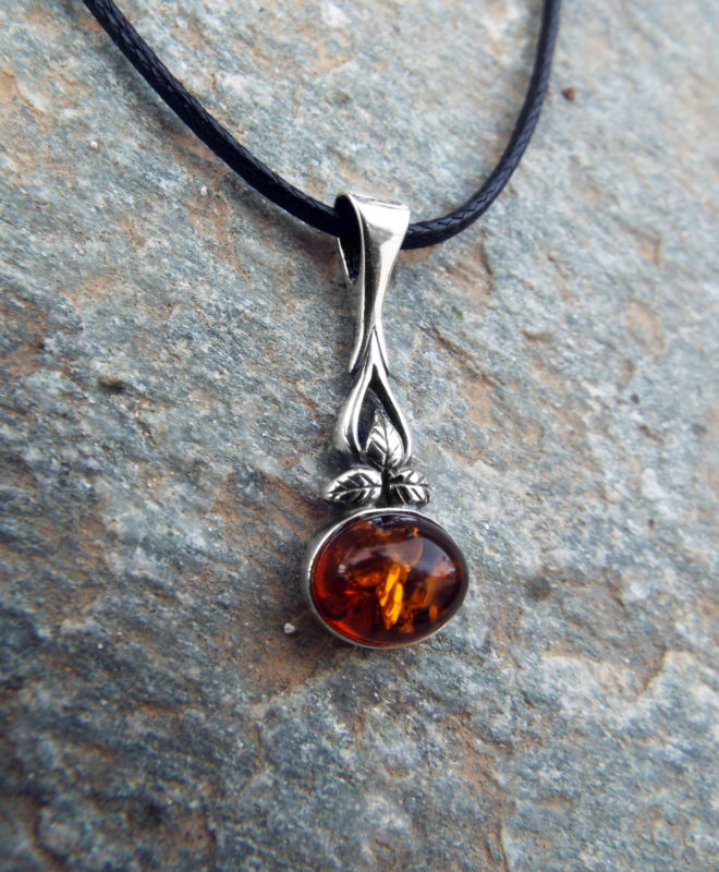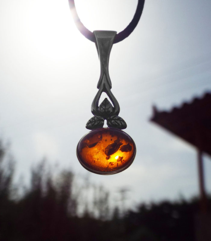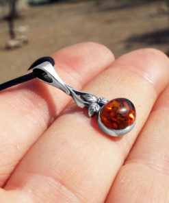 Embrace amber’s sunshine energy with this handmade pendant! It’s made of amber which sits in a sterling silver border, and shines orange and gold when it catches sunlight.