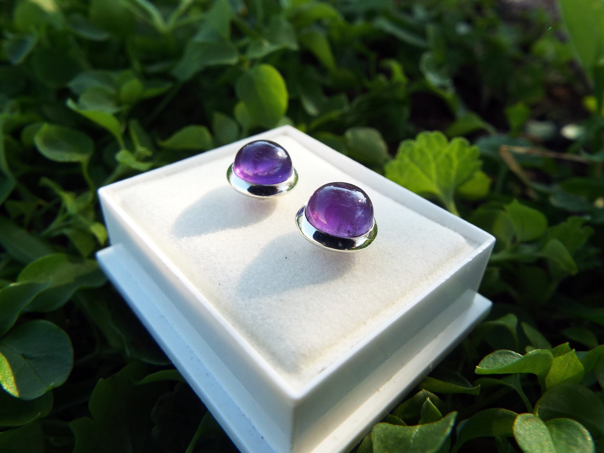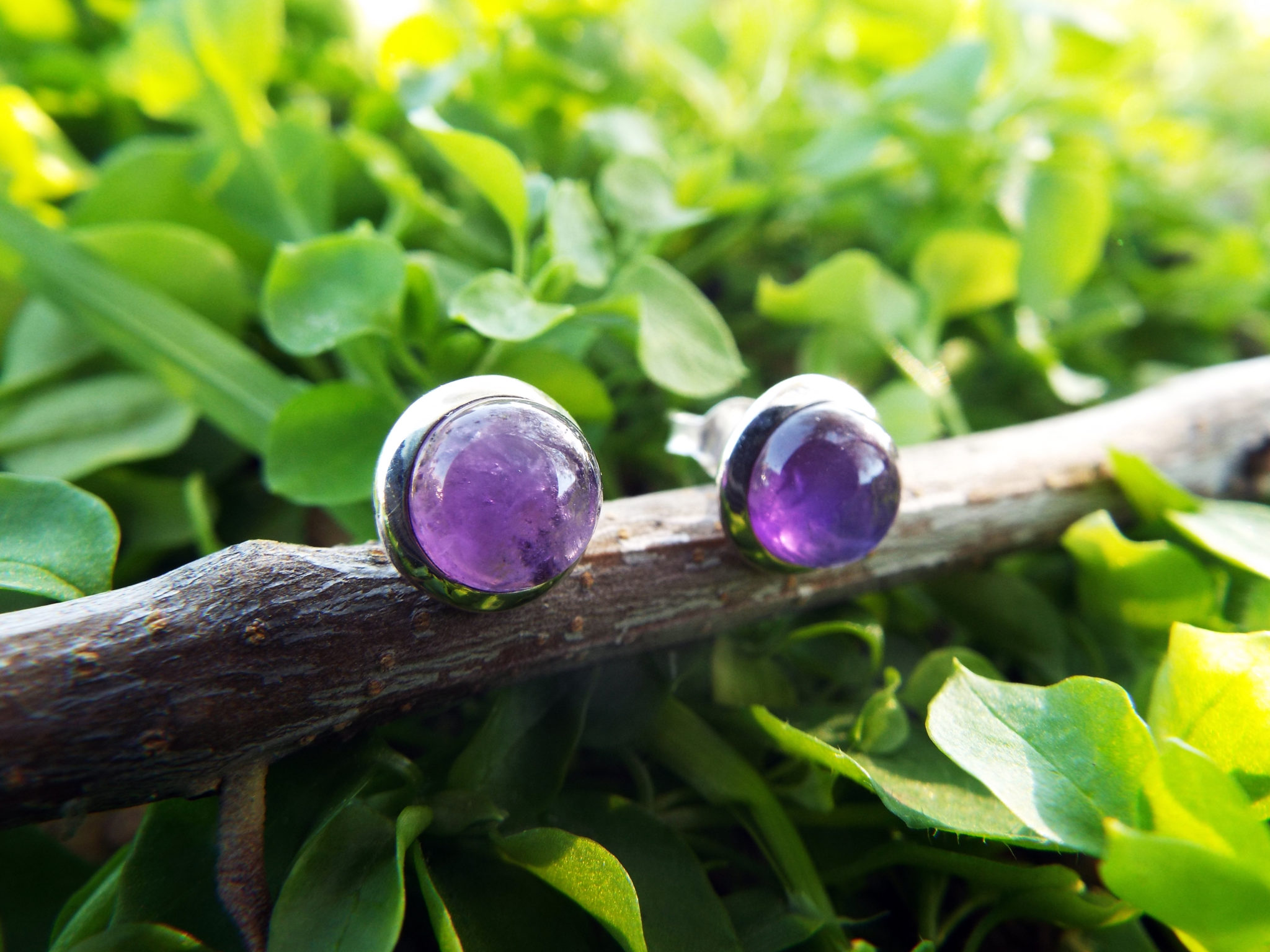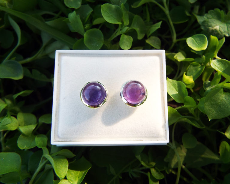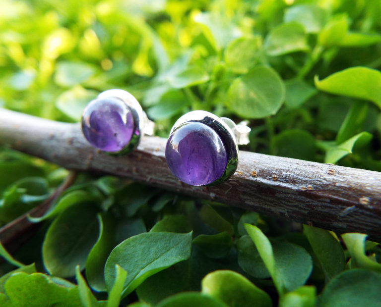 Embrace amethyst’s amazing energies with this beautiful pair of studs! They’ve been handmade with sterling 925 silver and deep purple amethyst. The earrings have an easy sterling silver ‘butterfly’ fastening.