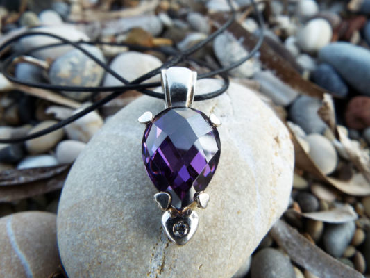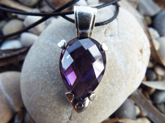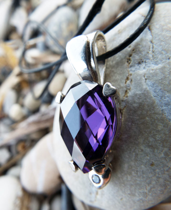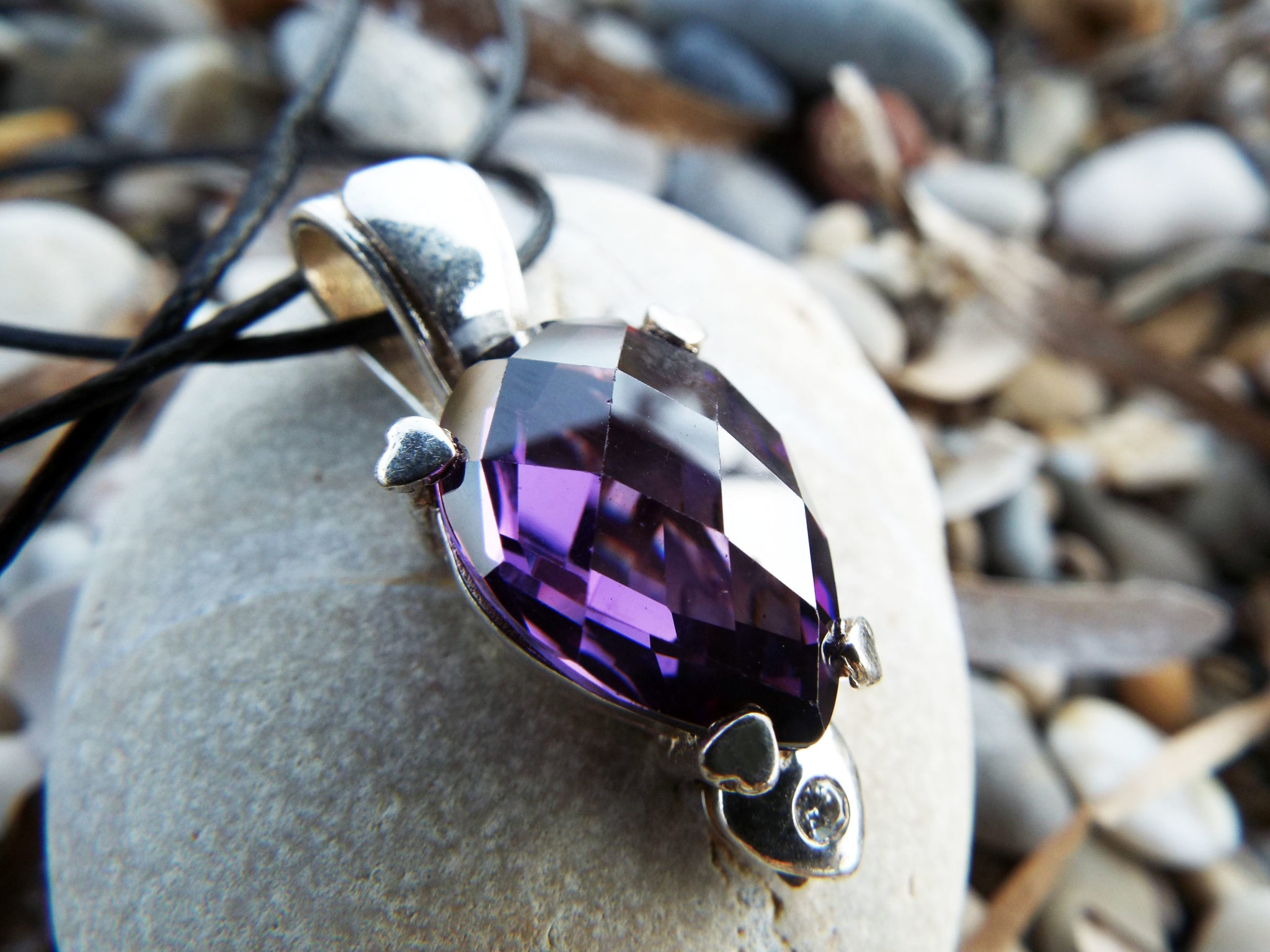 Amethyst Heart Pendant Sterling SIlver 925 Handmade Necklace Zircon Gemstone Jewelry