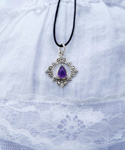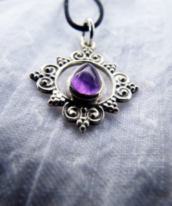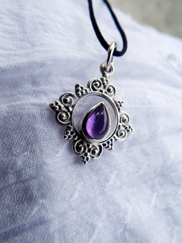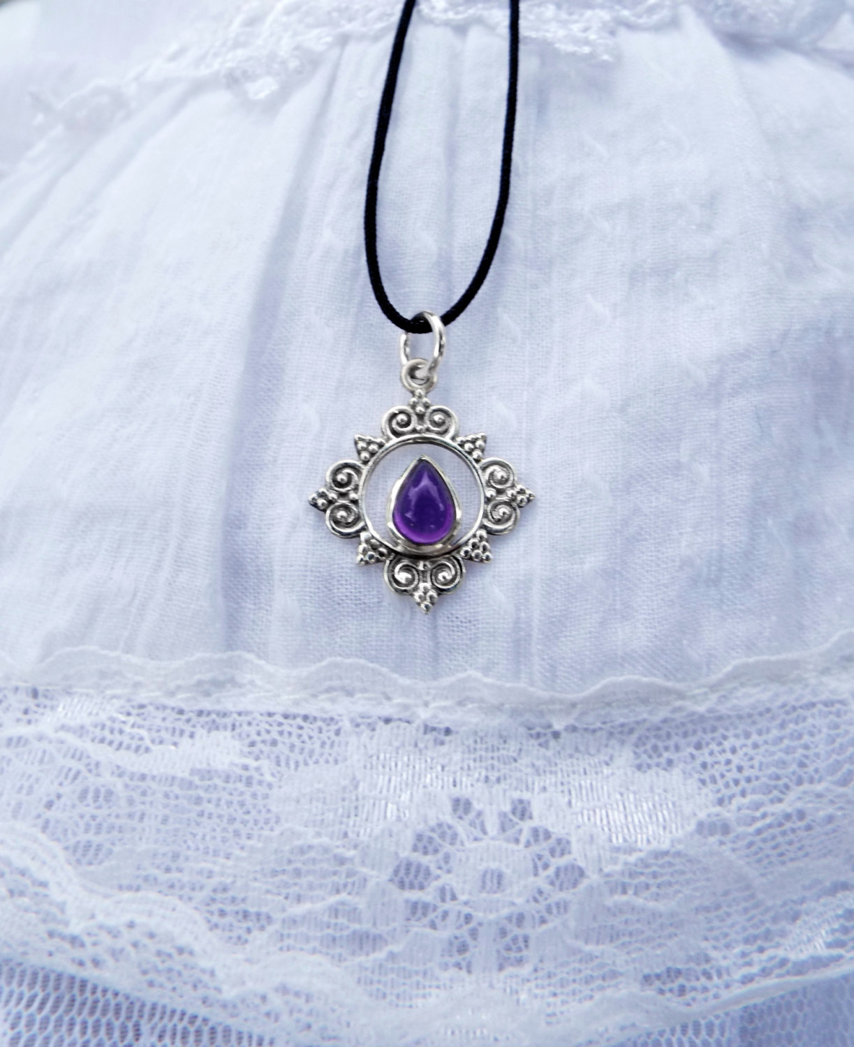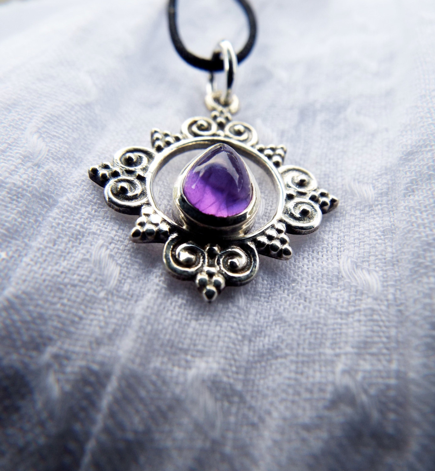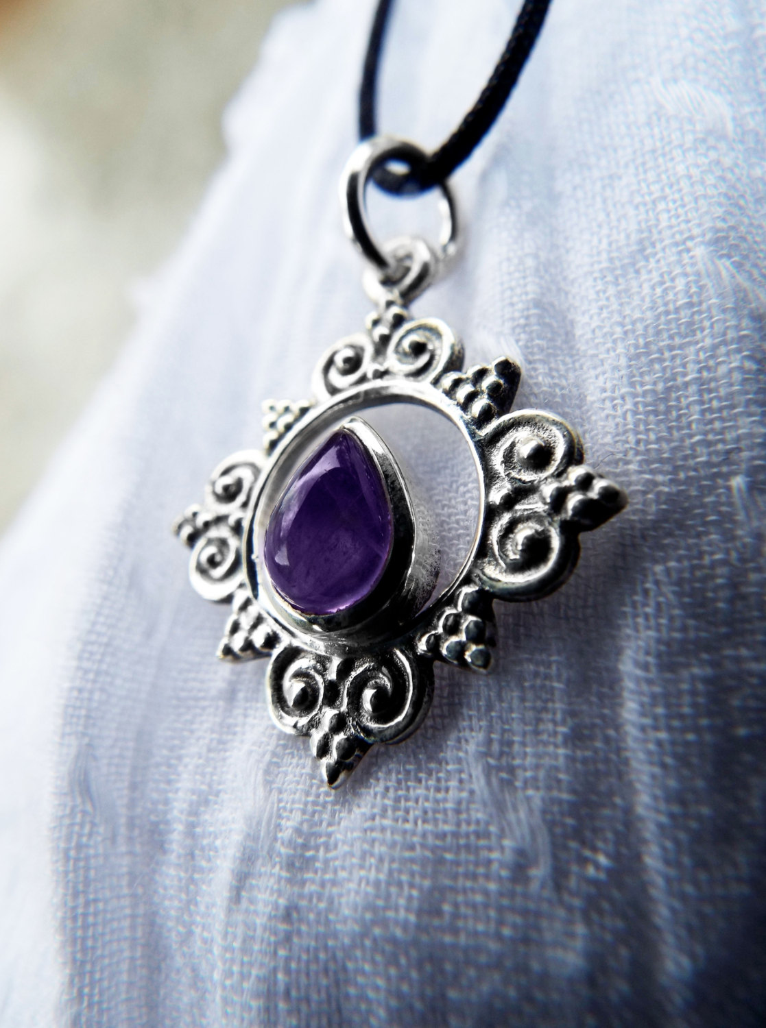 Amethyst Pendant Silver Handmade Sterling 925 Necklace Protection Jewelry Boho Antique Style Filigree