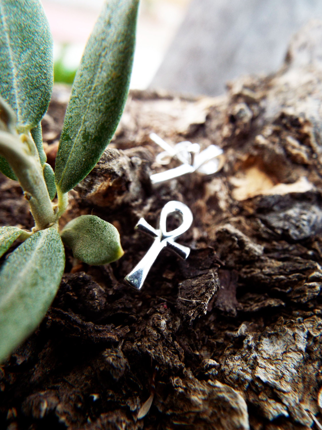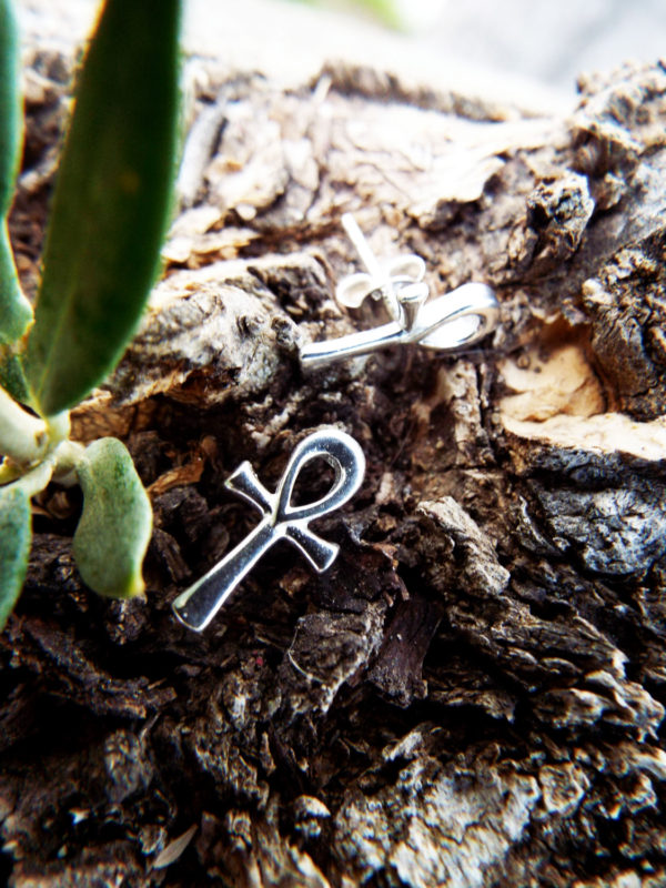 The ankh is one of the most familiar of Egyptian hieroglyphs. It resembles the Christian cross, with a loop above the transverse bar. Theories on its origins are numerous and varied; ranging from sexual symbolism to the common sandal strap. Like the Knot of Isis, which it resembles, it is most likely depicts some kind of elaborate bow. Detailed representations of the ankh show that the lower section is actually comprised of two parts – the ends of the bow.