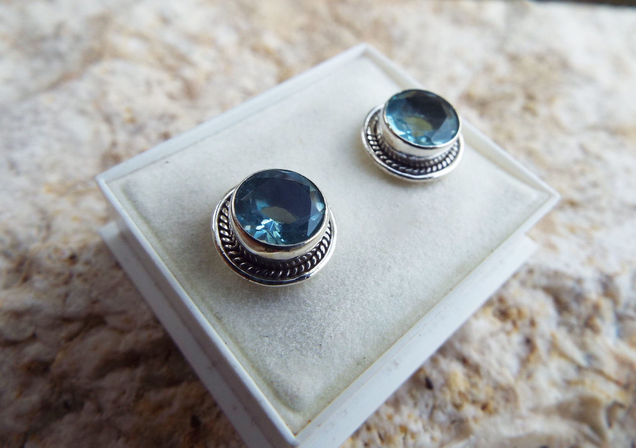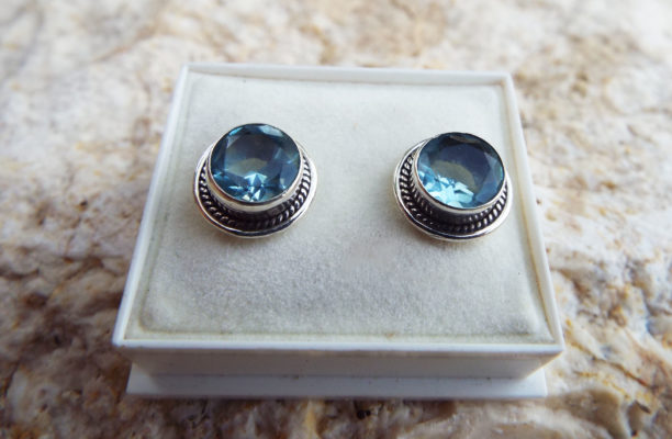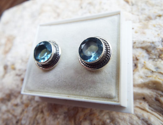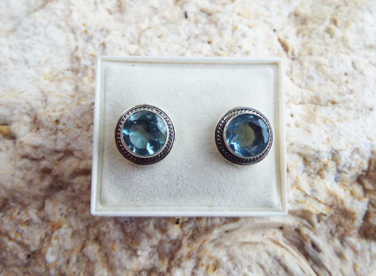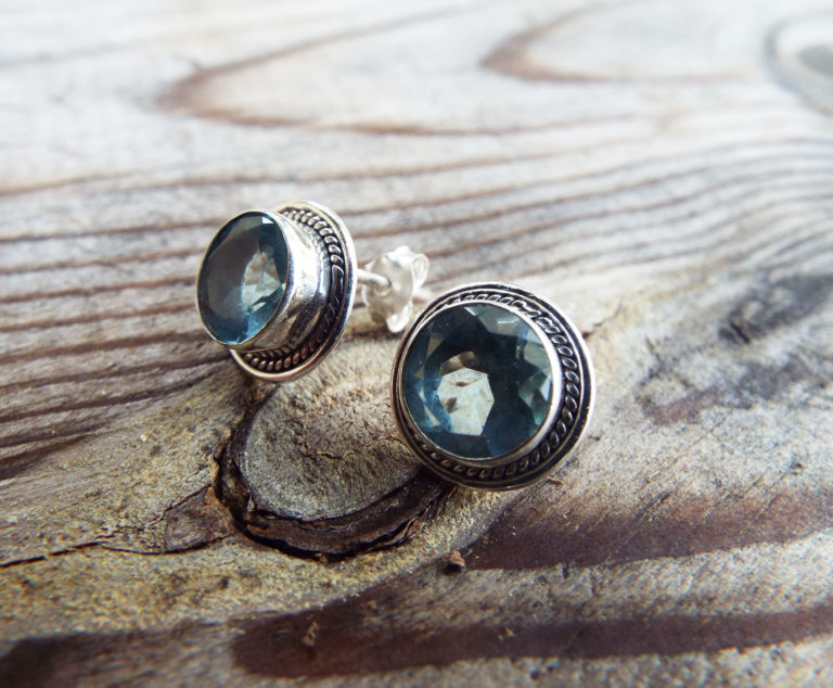 Embrace aquamarine’s watery energies with this handmade pair of studs! They’re made of sterling 925 silver and brilliant aquamarine, which shimmers in the light.