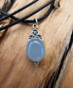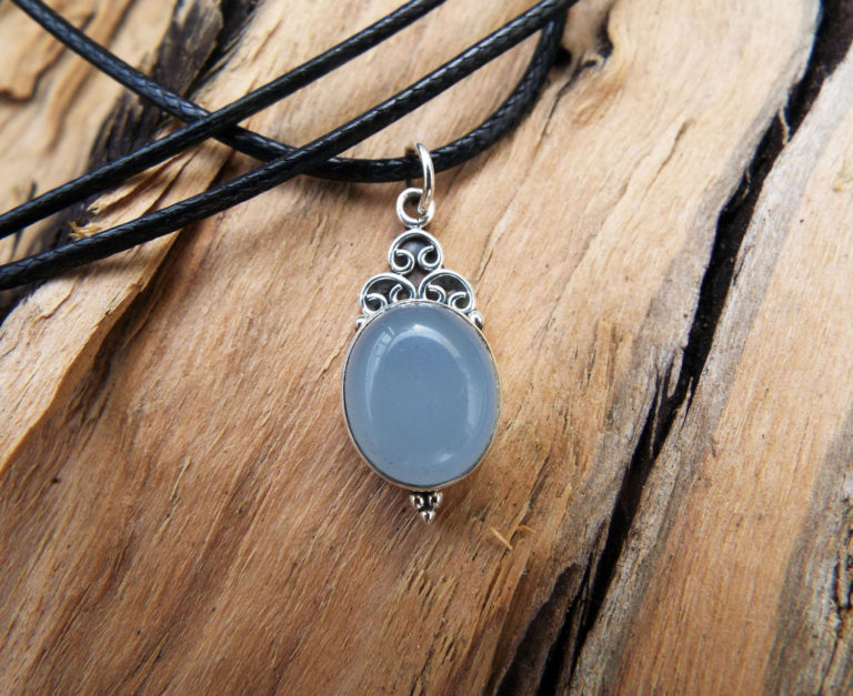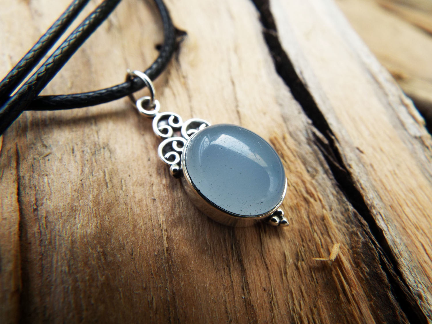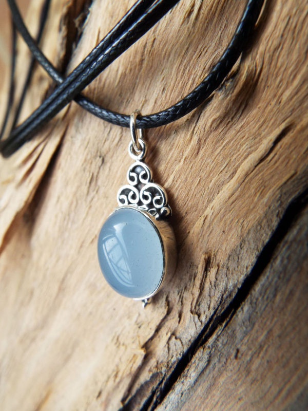 The piece will be sent with an adjustable black cotton strap but it also looks great with a silver chain.