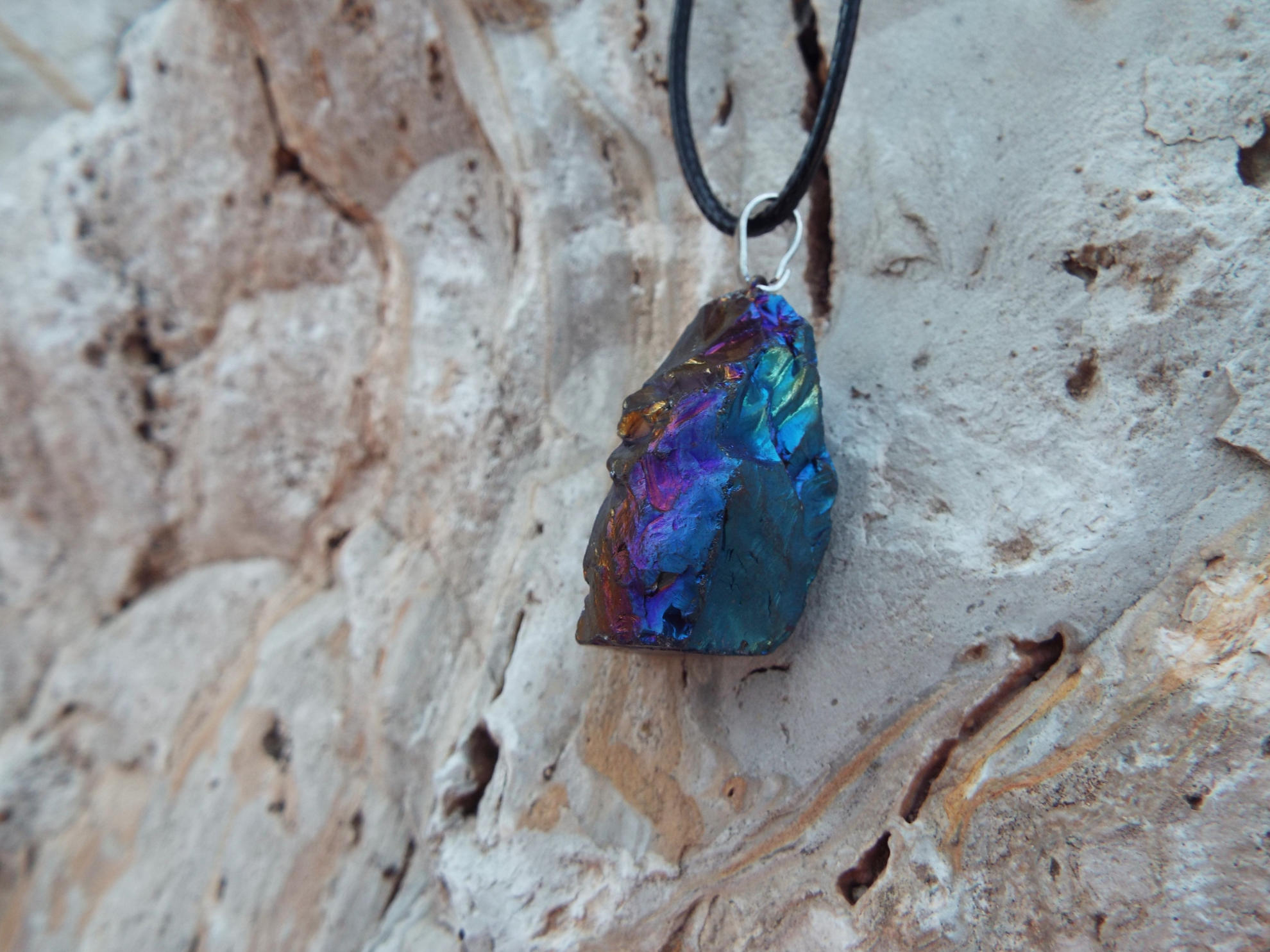 Rainbow Hematite Pendulum Pendant Silver Handmade Gemstone Necklace Stone Gothic Magic Wicca Jewelry