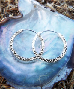 These traditional hoops have been handmade using sterling 925 silver, and depict a Balinese design which dates back to centuries of existence. The intricate pattern work creates an authentic, tribal pair of earrings which can be worn on every occasion. The hoops measure: