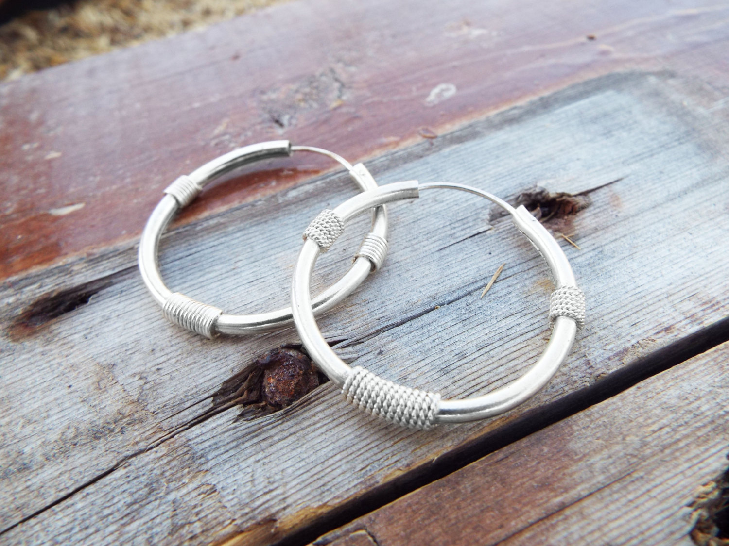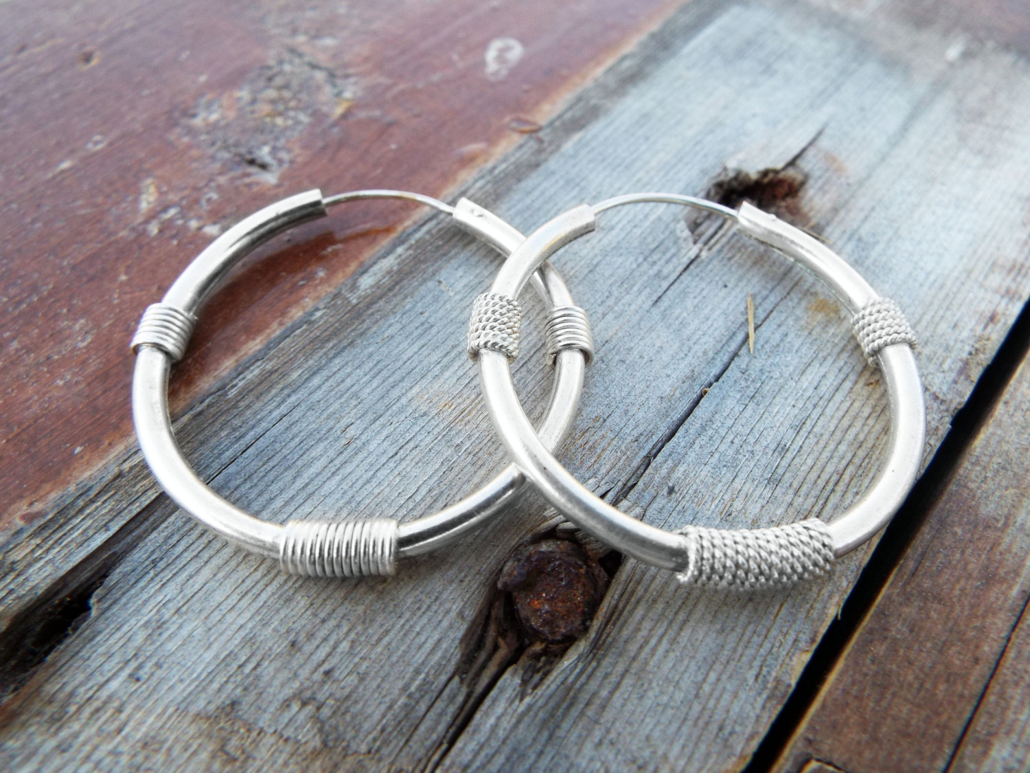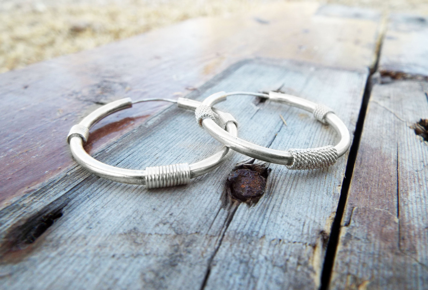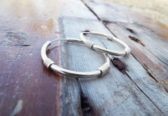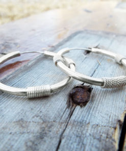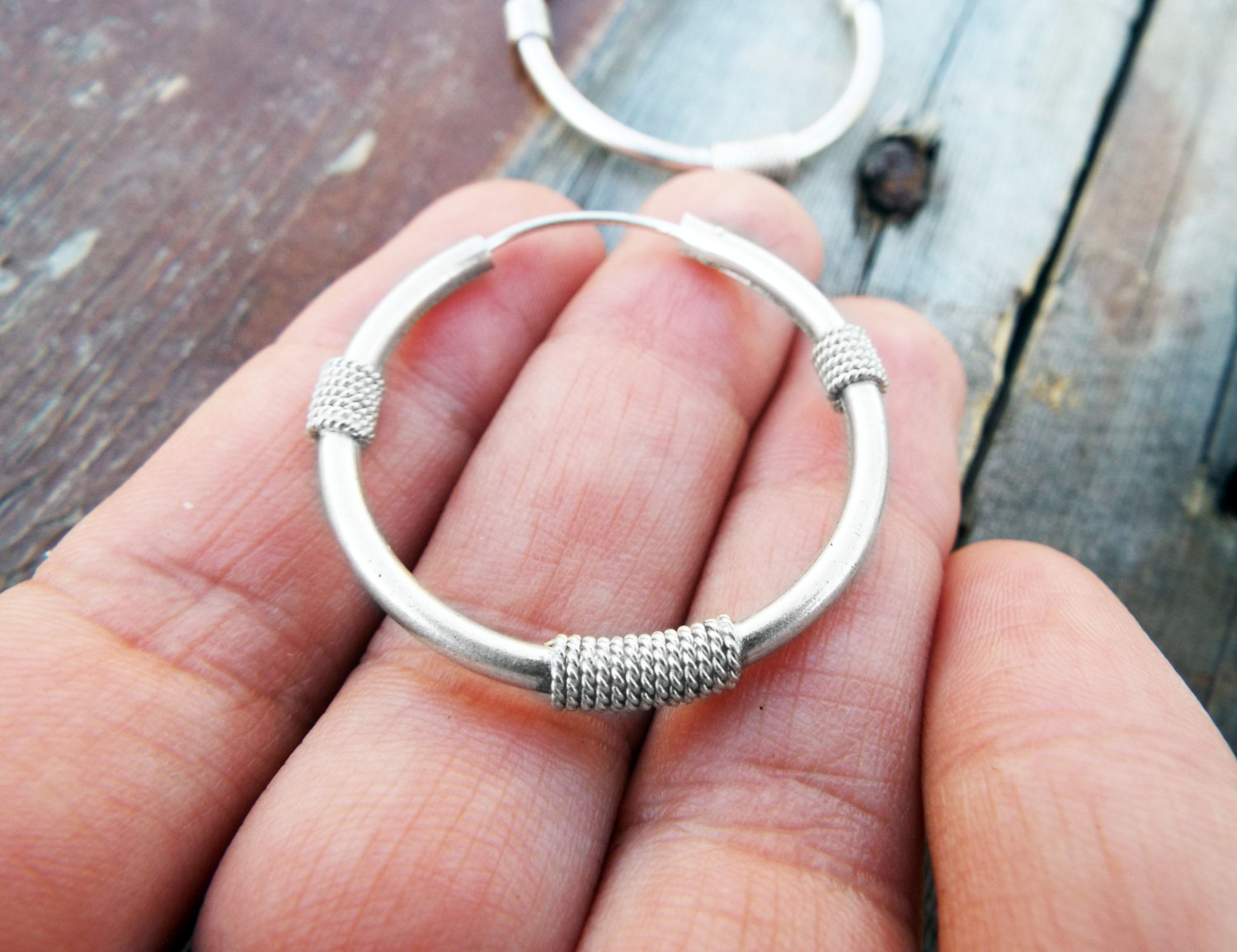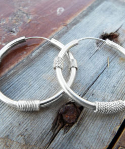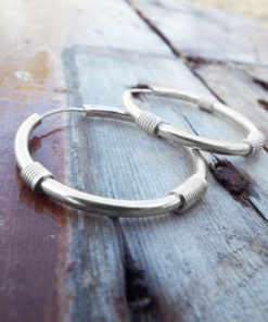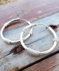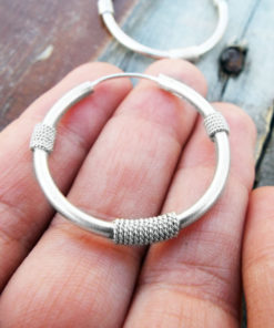 These traditional hoops have been handmade using sterling 925 silver, and depict a Balinese design which dates back to centuries of existence. The intricate pattern work creates an authentic, tribal pair of earrings which can be worn on every occasion. Each hoop is individually crafted, making it beautifully unique. The hoops measure: