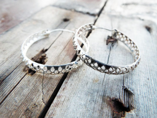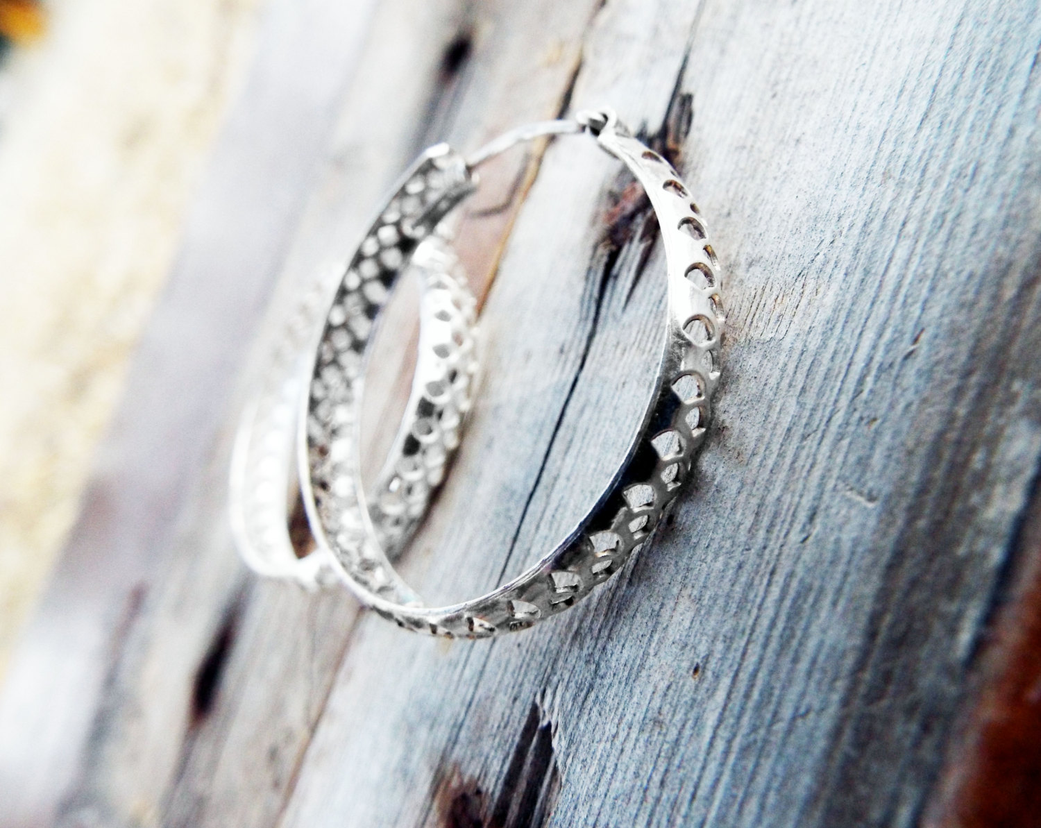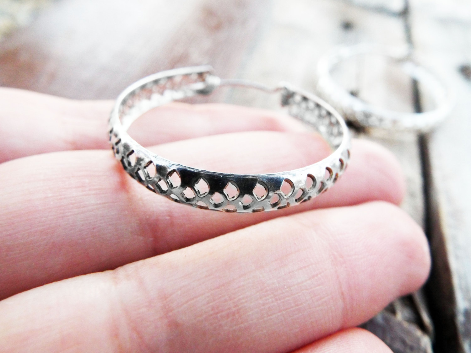 Bali Hoop Earrings Silver Balinese Sterling 925 Tribal Handmade Jewelry Patterned Traditional