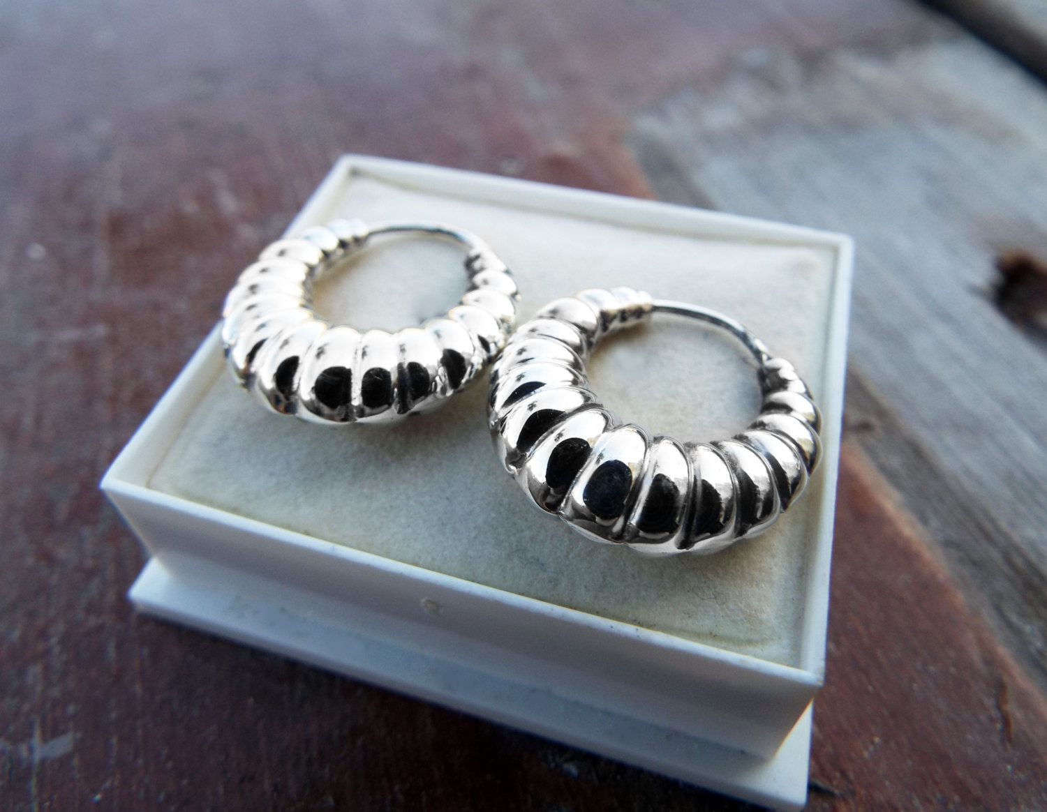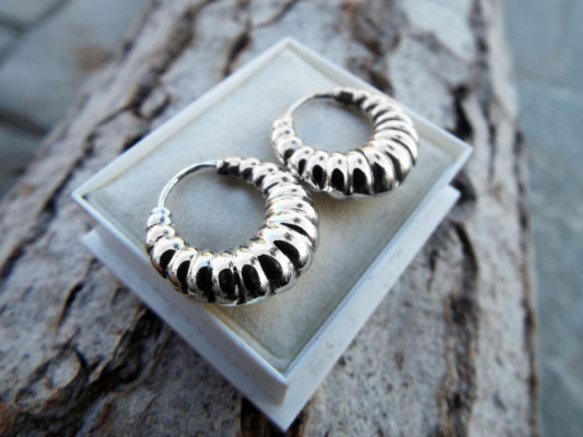These traditional hoops have been handmade using sterling 925 silver, and depict a Balinese design which dates back to centuries of existence. The design creates an authentic, tribal pair of earrings which can be worn on every occasion. The hoops measure: