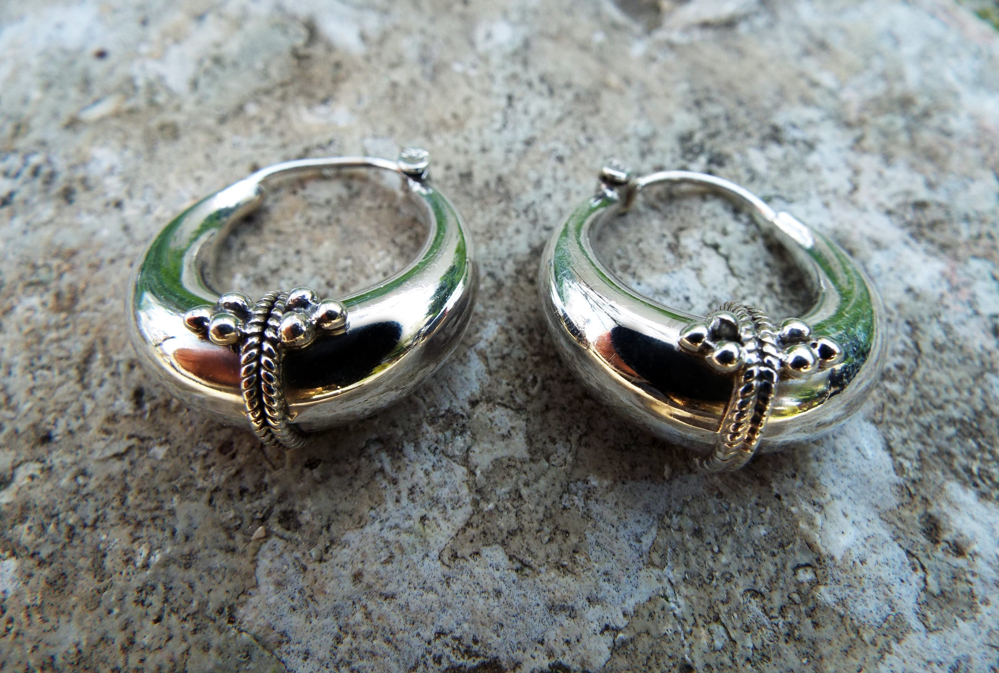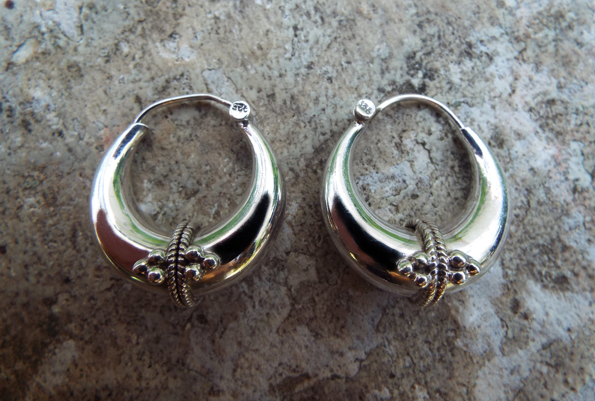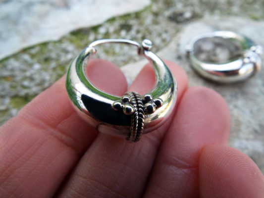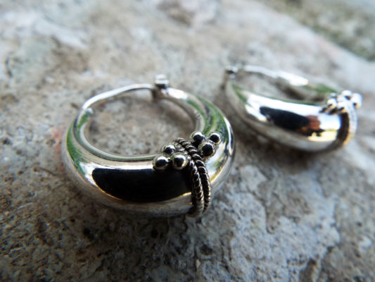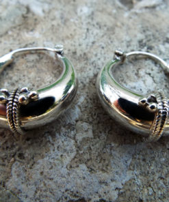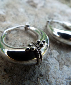 These traditional hoops have been handmade using sterling 925 silver, and depict the classical Balinese design which dates back to centuries of existence. The intricate pattern work creates an authentic, tribal pair of earrings which can be worn on every occasion.