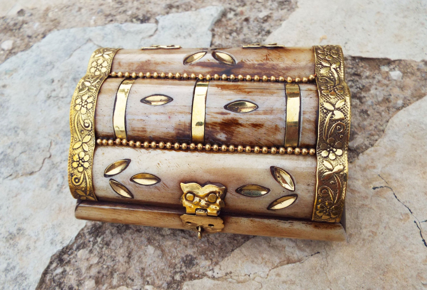 Bone Box Handmade Trinket Chest Carved Jewelry Box Antique Vintage