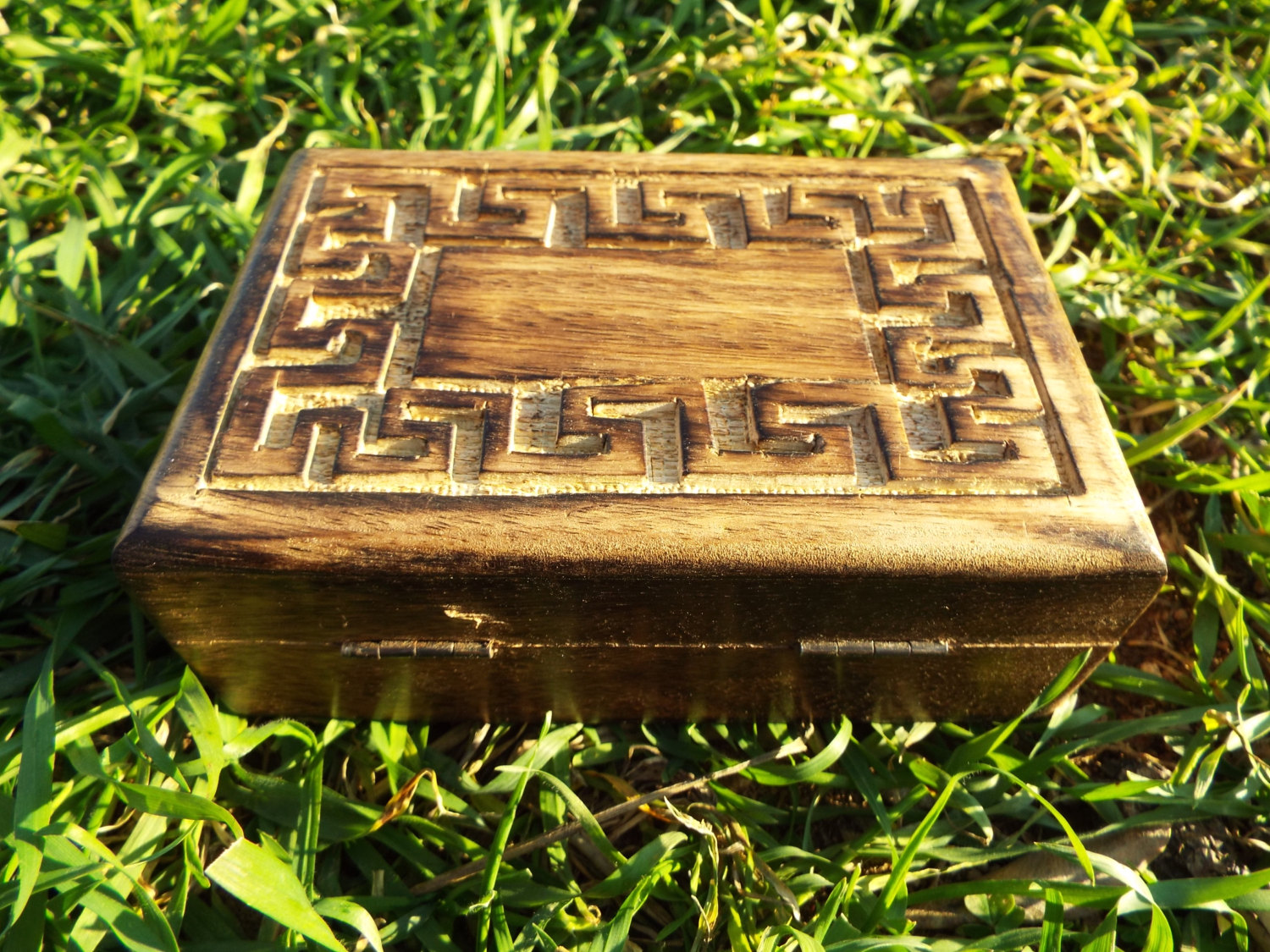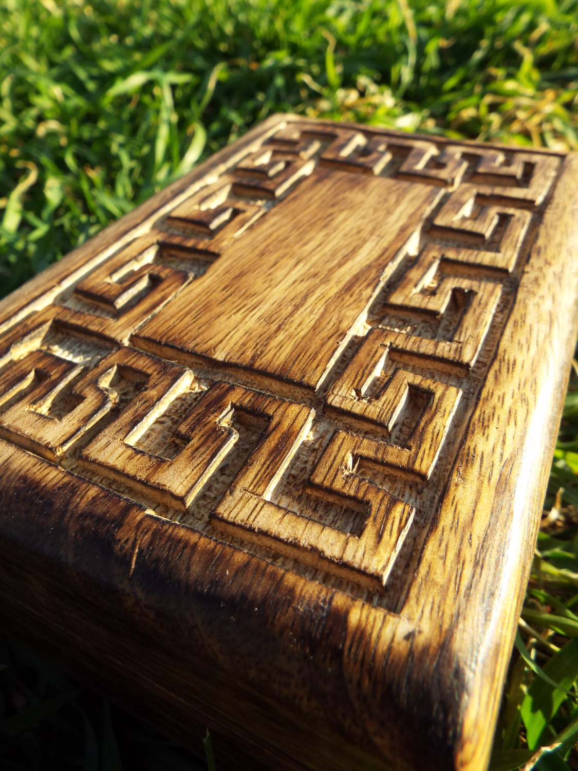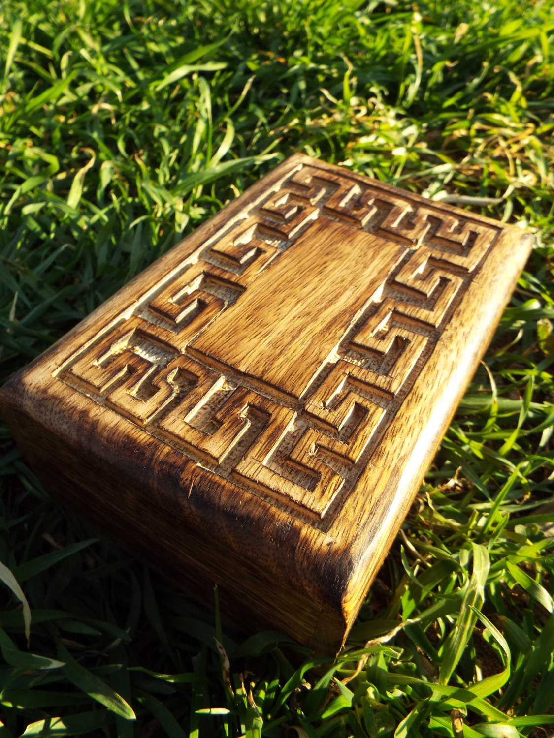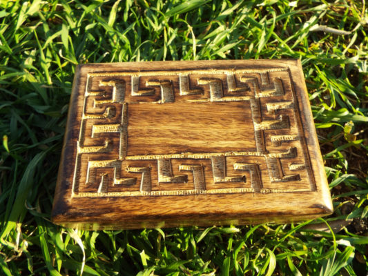 Box Meander Symbol Ancient Greek Wooden Carved Handmade Trinket Jewelry Labyrinth Key Pattern Mango Tree Wood Eco Friendly