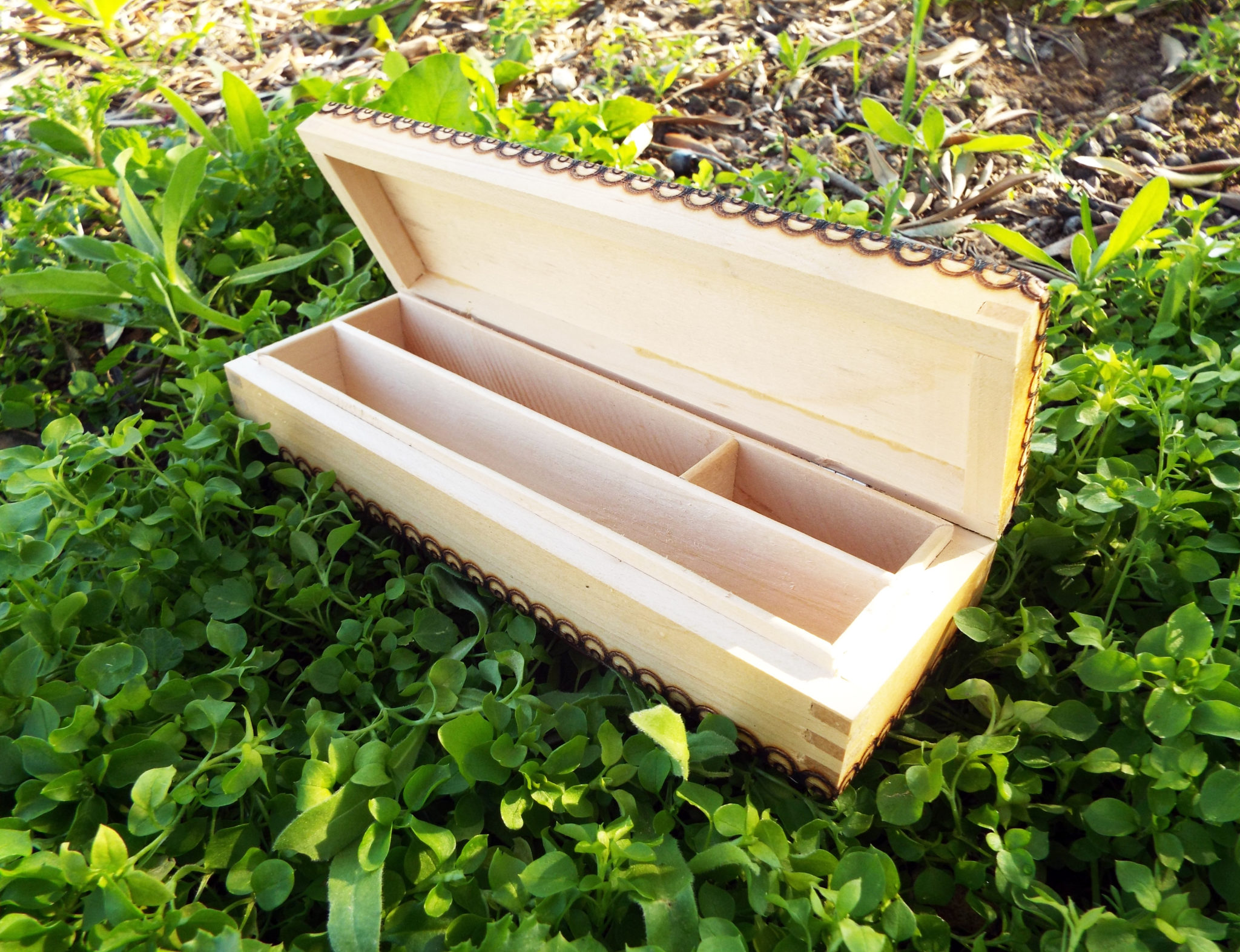 Box Wooden Handmade Pencil Box Pencilcase Indian Balinese Trinket Hand Painted Bohemian