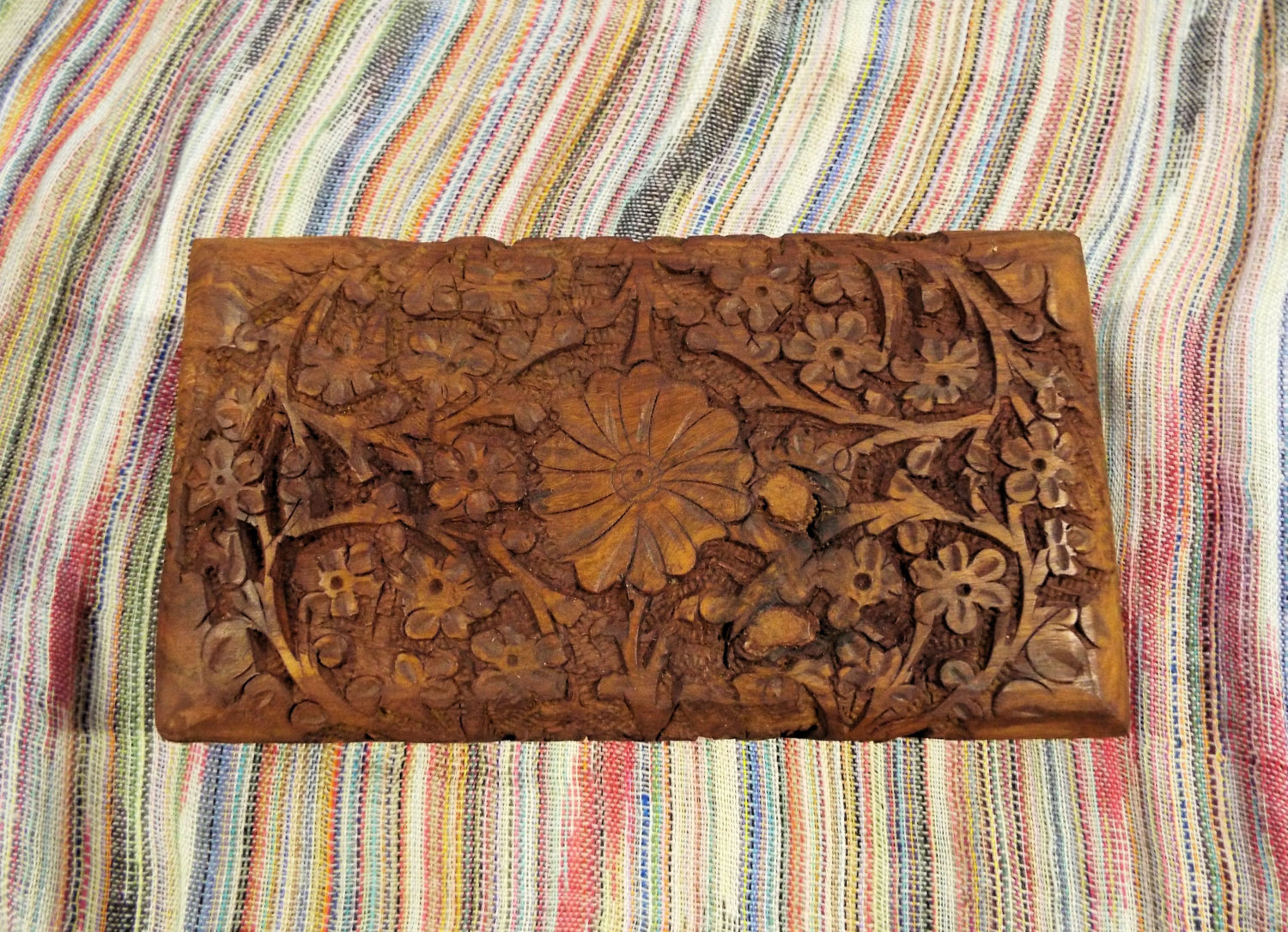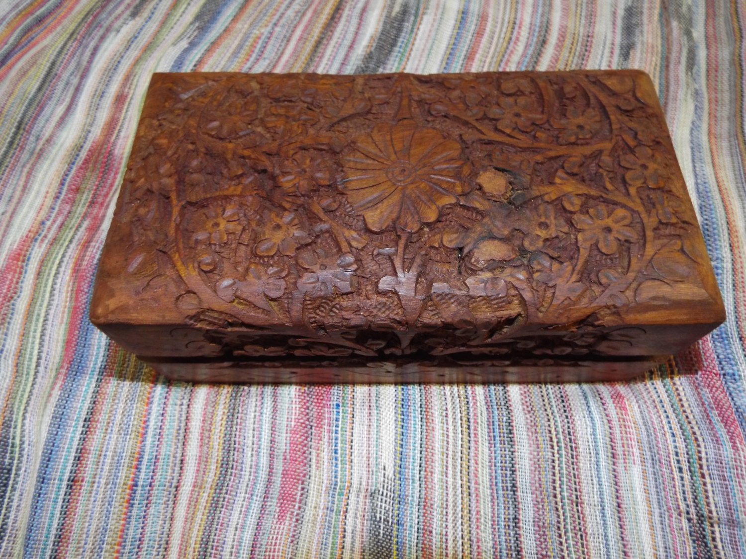 Box Wooden Jewelry Carved Handmade Balinese Home Decor Indian Floral Trinket Velvet Treasure 12Chest