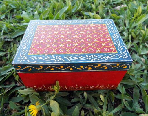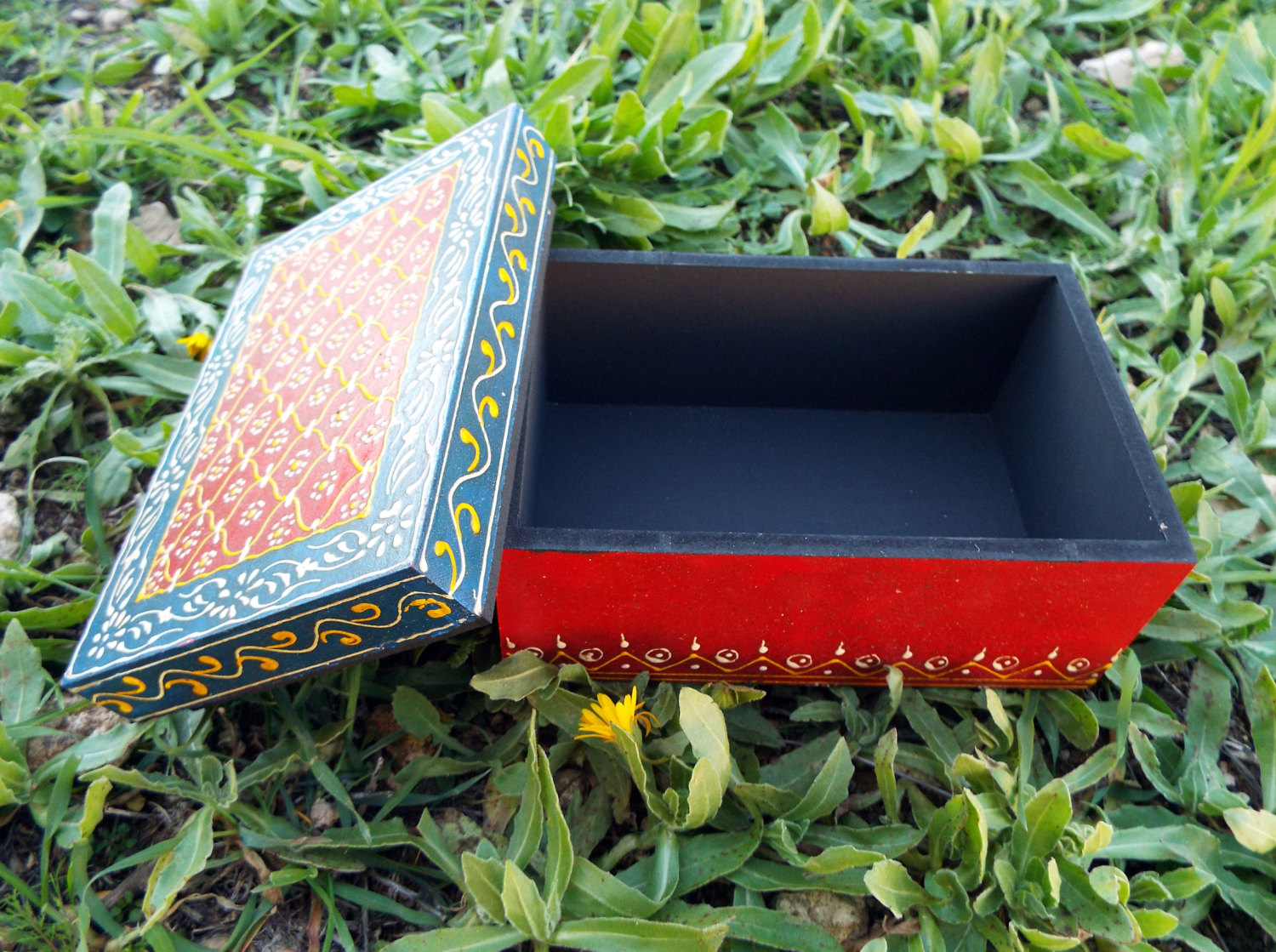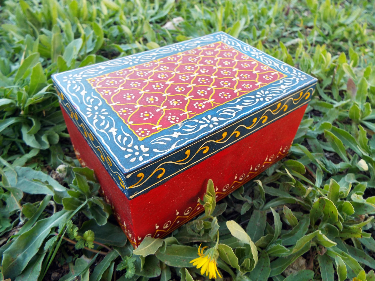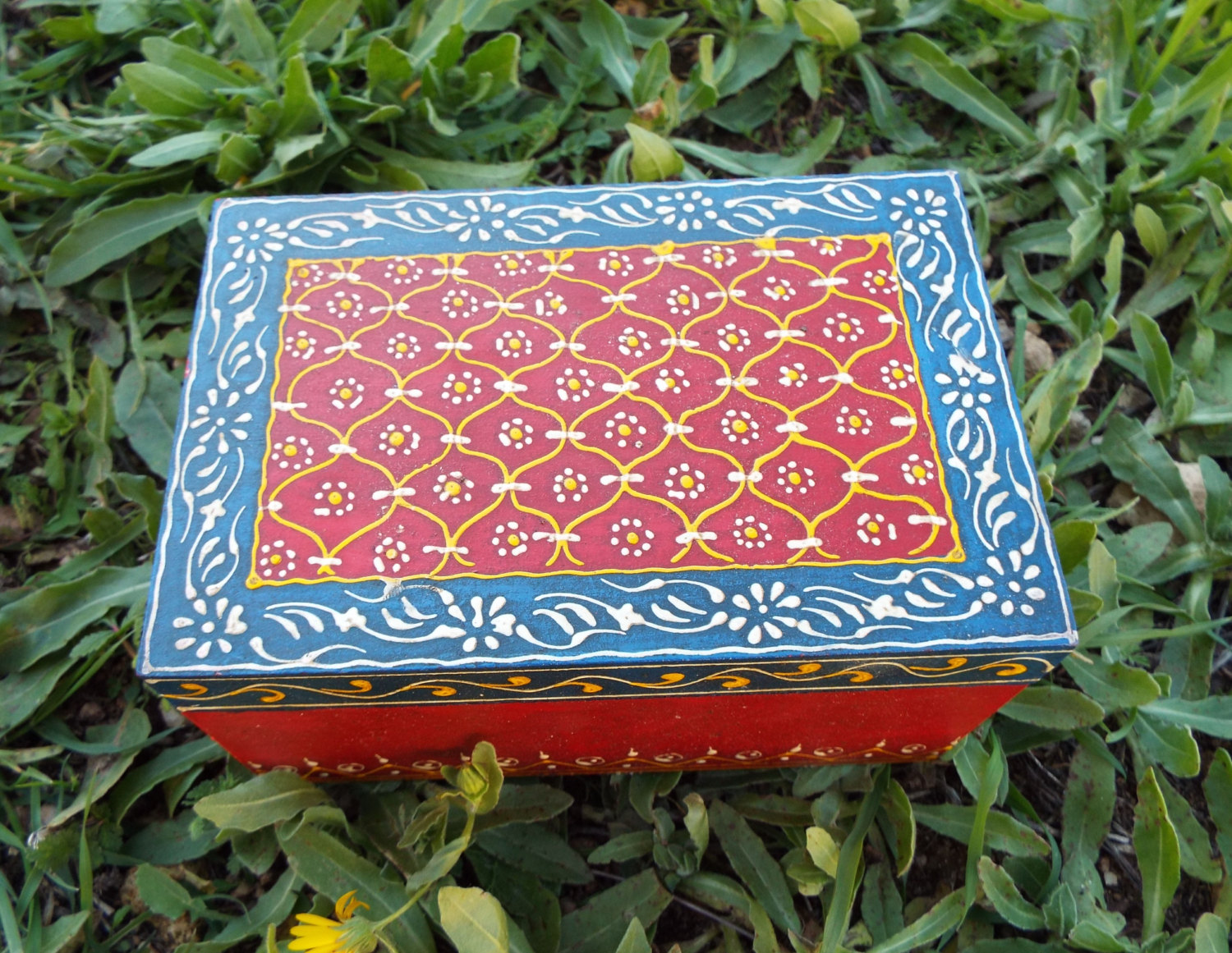Box Wooden Jewelry Hand Painted Handmade Flower Balinese Home Decor Indian Floral Trinket Velvet Treasure Chest