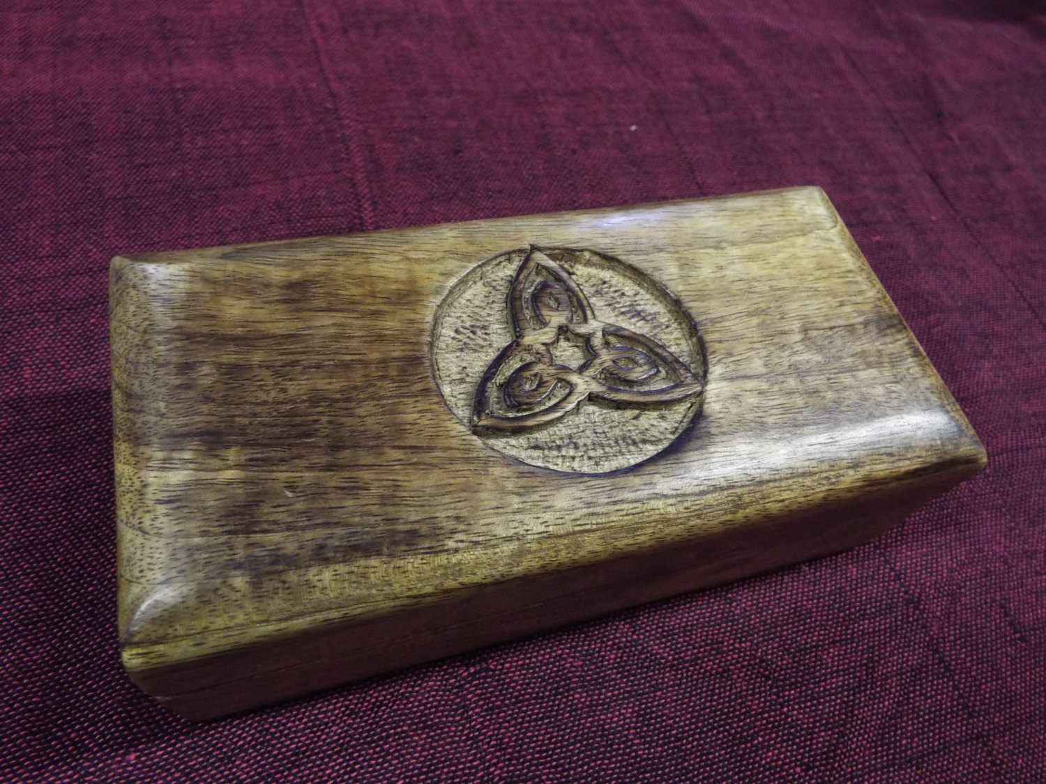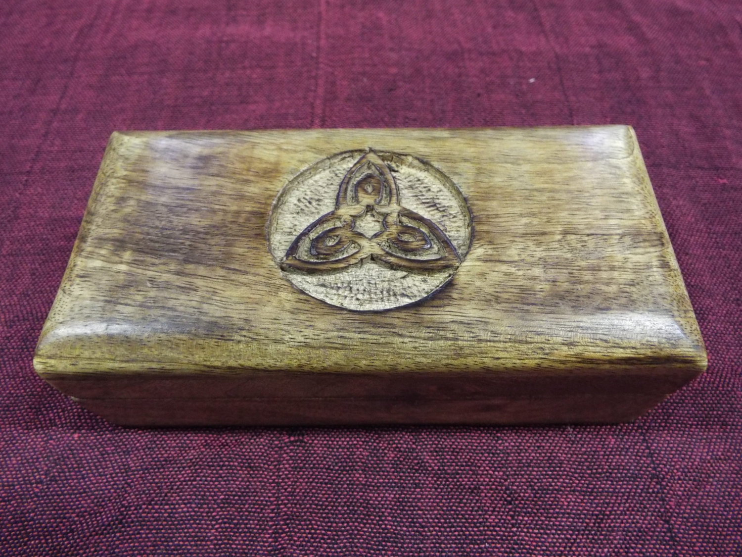 This beautiful handmade box is hand carved and has a Celtic Triquetra.
