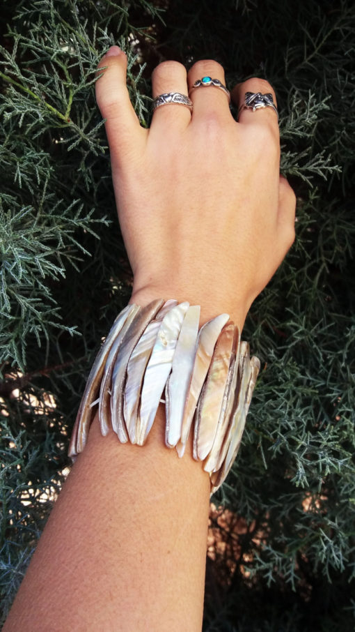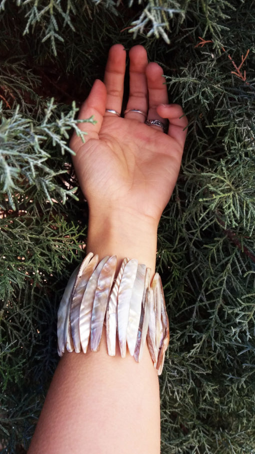 This bracelet has been handmade with gathered seashells from the Ionian Sea. They have wonderful pearly tones that glisten like waves. This would make the perfect addition to your summer collection! The measurements are as follows: