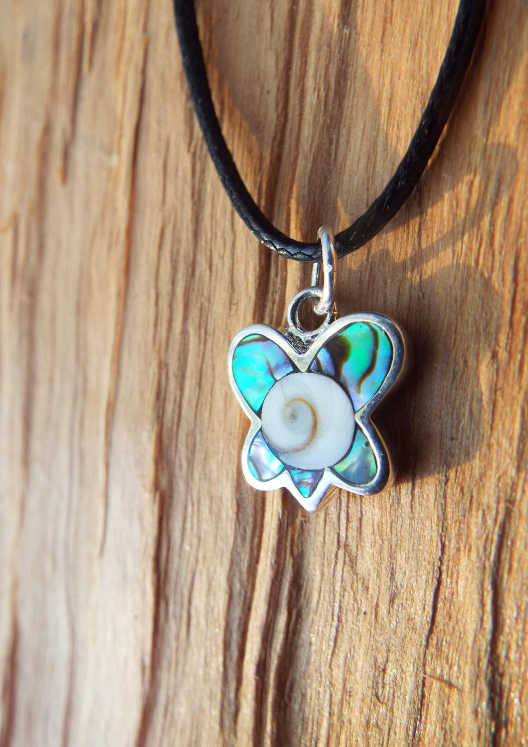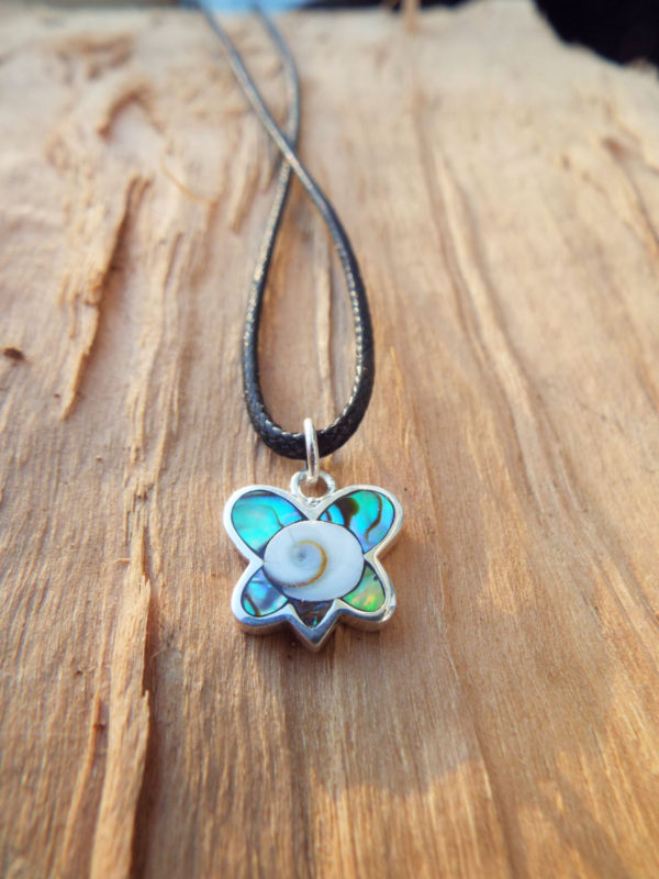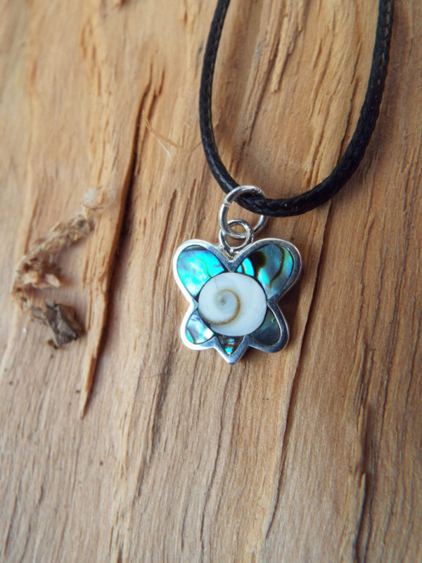 Embrace the magic of the butterfly with this handmade pendant! It's made of sterling 925 silver, abalone and shiva. The measurements are as follows: