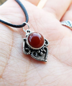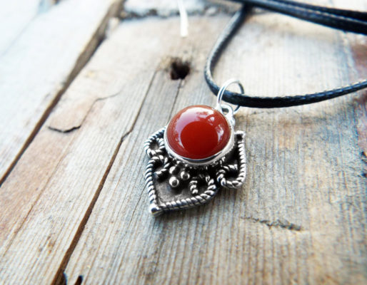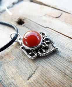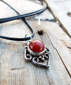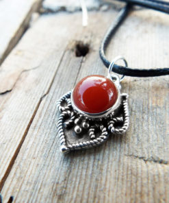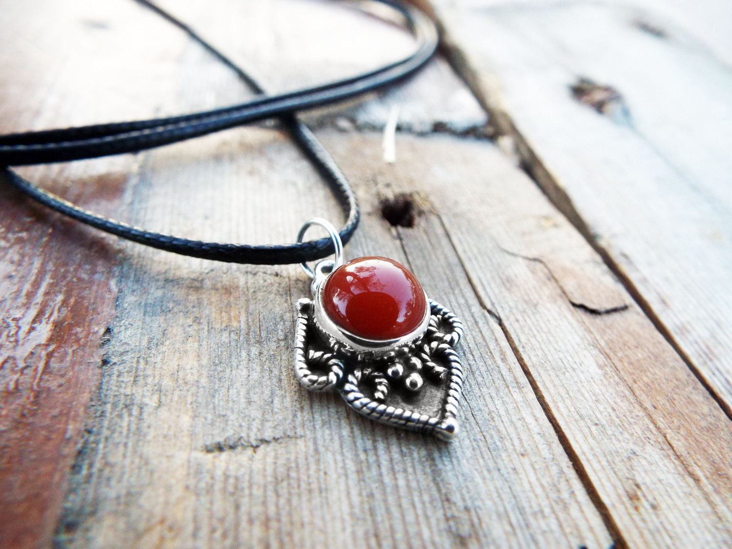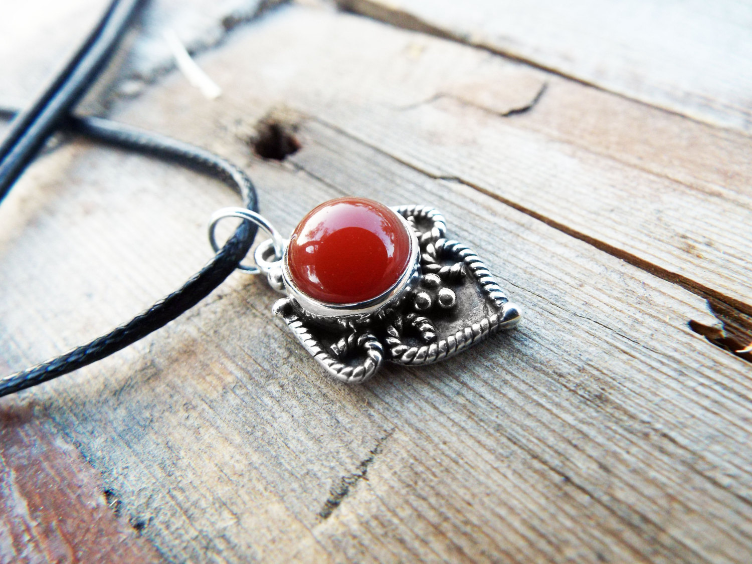 Carnelian Pendant Silver Necklace Sterling 925 Handmade Gemstone Stone Protection Gothic Antique Vintage Jewelry
