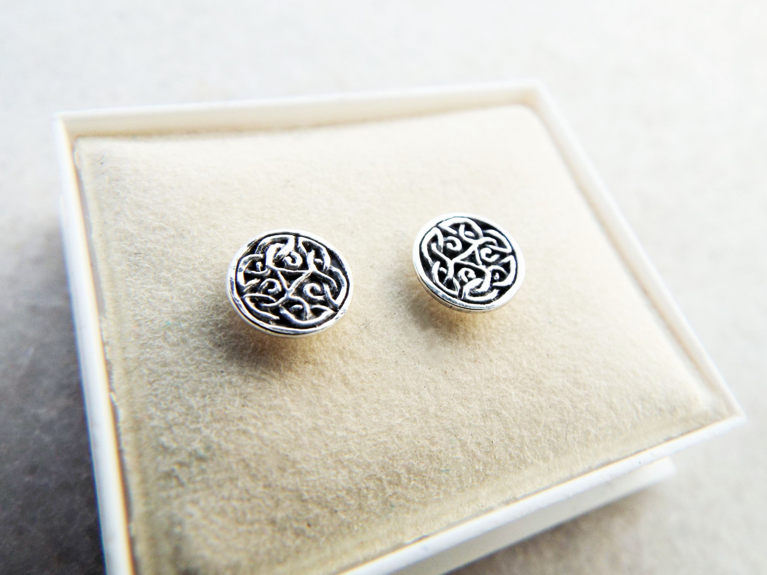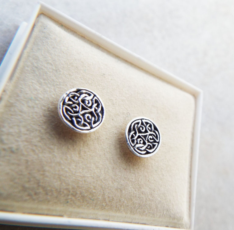 Embrace the Celtic Knot’s energies with this beautiful pair of studs! They’ve been handmade with sterling 925 silver and carved with beautiful patterns. The earrings have an easy sterling silver ‘butterfly’ fastening. The measurements are as follows: