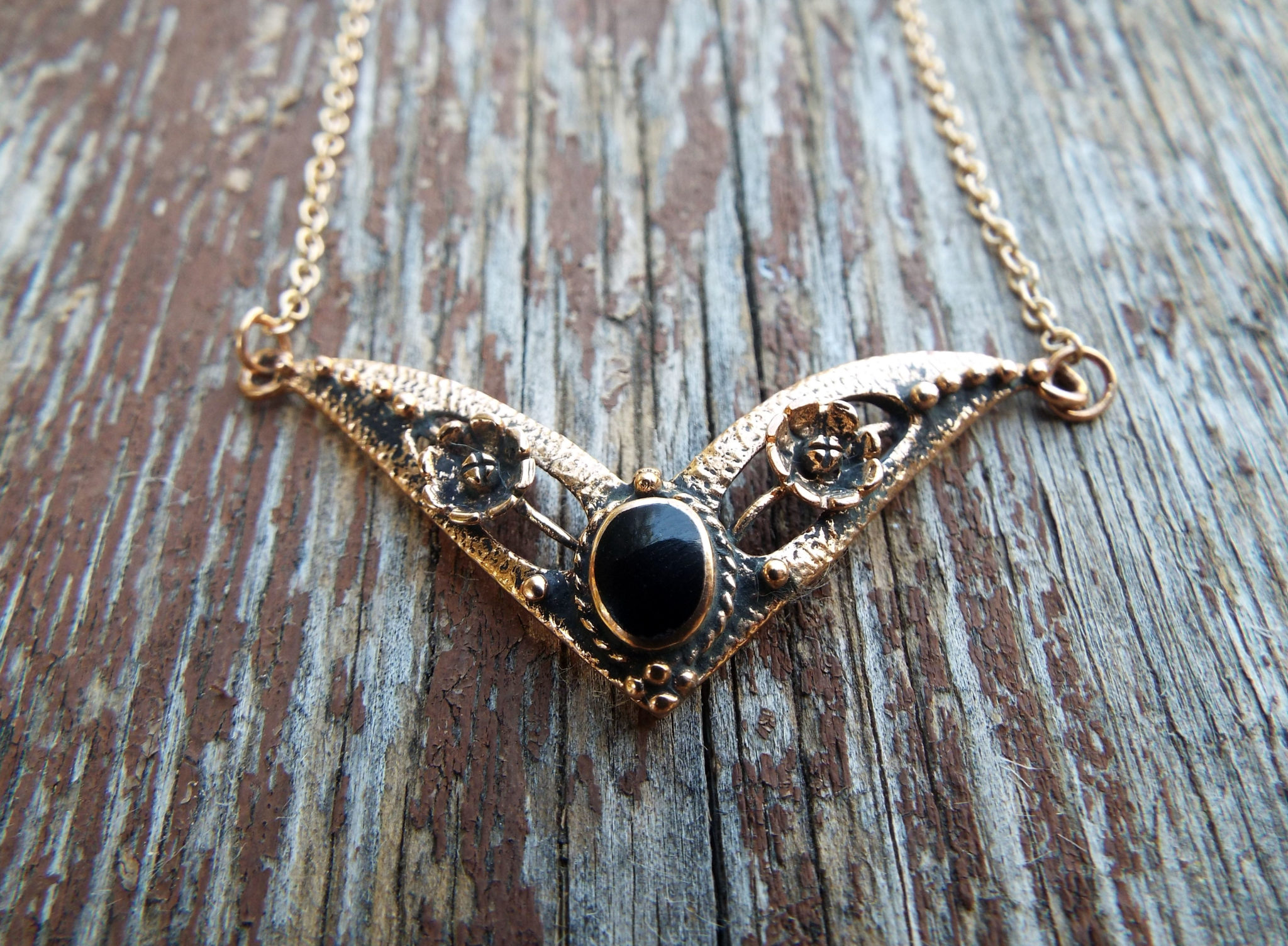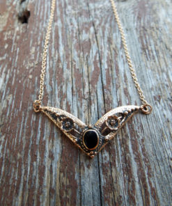 Embrace the positive energy of onyx with this handmade piece! It’s made of warm copper and shiny black onyx.