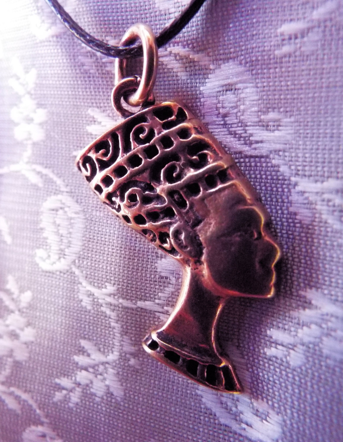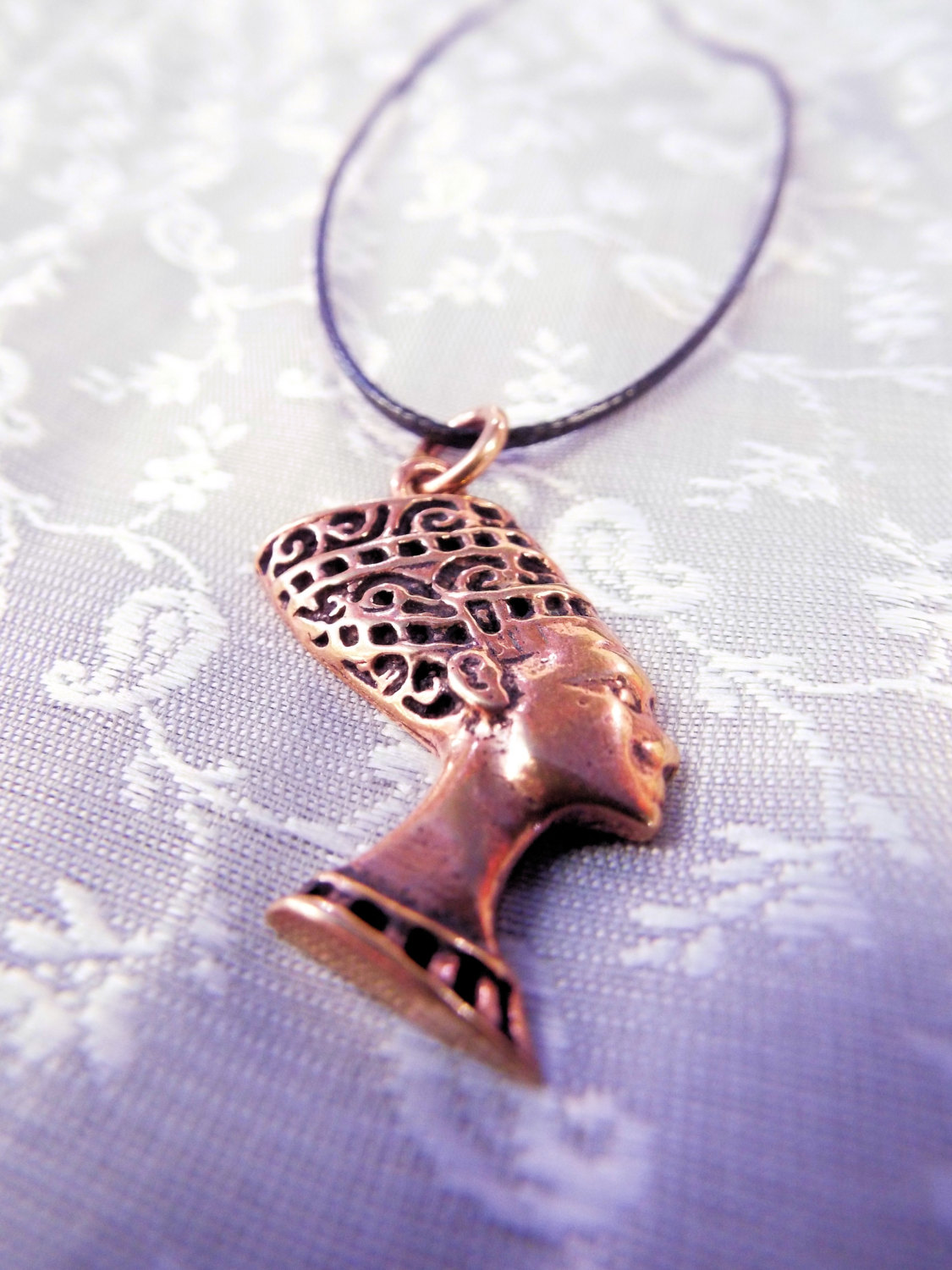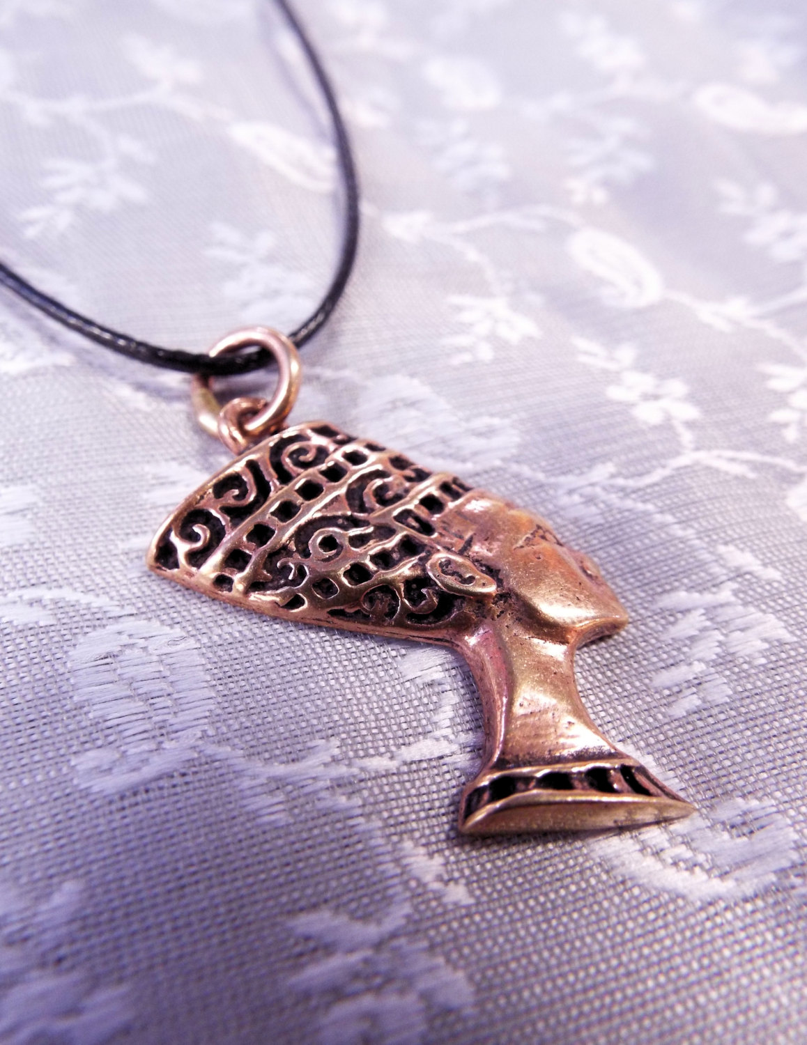 Embrace the beautiful and graceful energy of Nefertiti with this handmade copper pendant. It has been hand carved, especially to highlight and decorate her famous bust. The wearer will surely feel her desire to lead and understand others. The measurements are as follows: