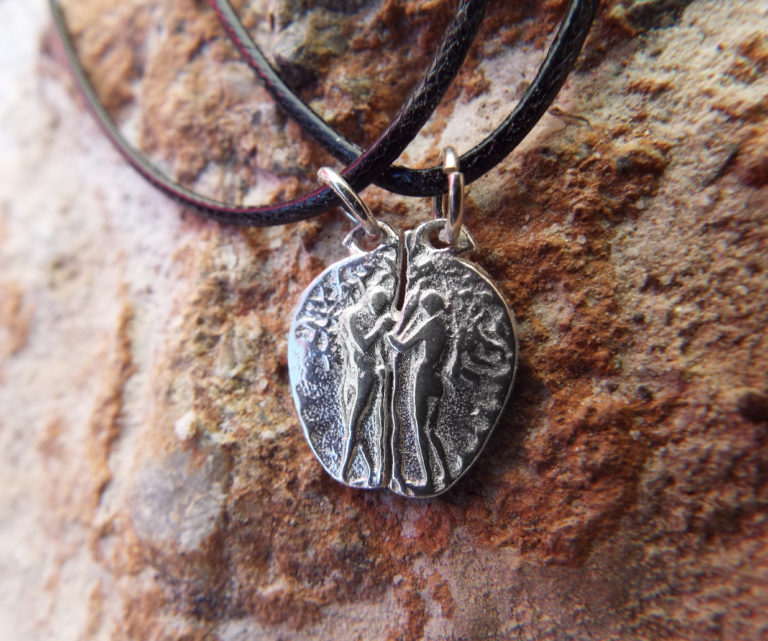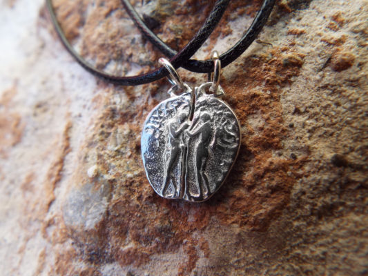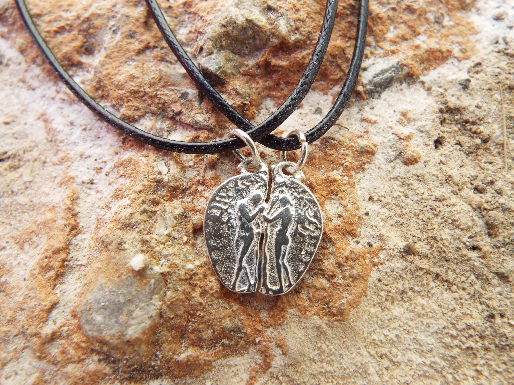 Declare your love and appreciation for your significant other with this beautiful handmade pendant. It is made of sterling 925 silver and the two halves hold an image of Adam and Eve. Once you receive the pendant, you snap it in two and you keep one half while your significant other keeps the second half.