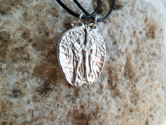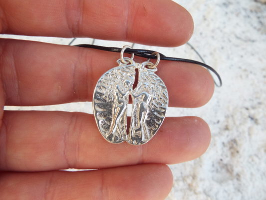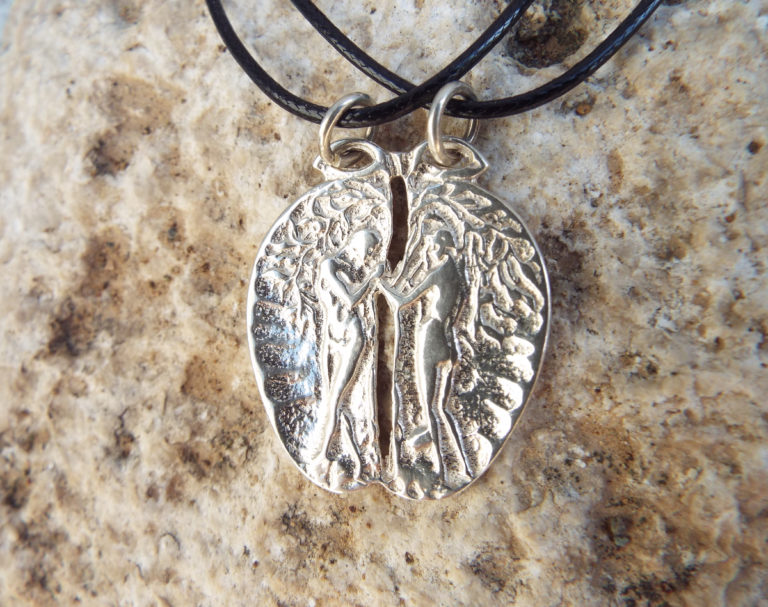 Declare your love and appreciation for your significant other with this beautiful handmade pendant. It is made of sterling silver 925 and the two halves hold an image of Adam and Eve. Once you receive the pendant, you snap it in two and you keep one half while your significant other keeps the second half.