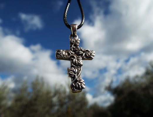 It’s handmade from sterling silver 925 and depicts a beautiful floral/leafy cross.