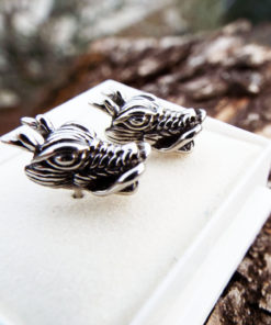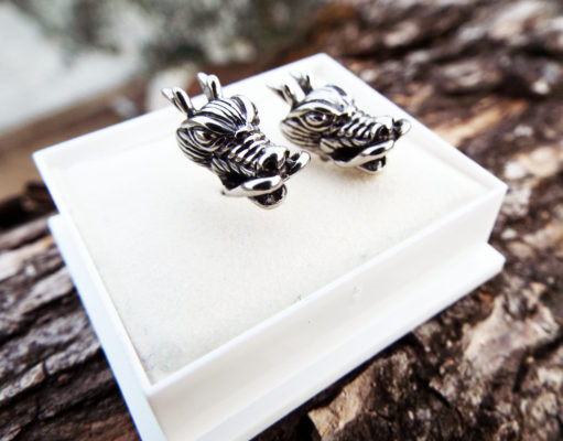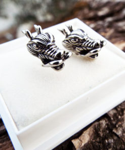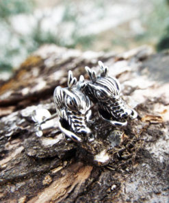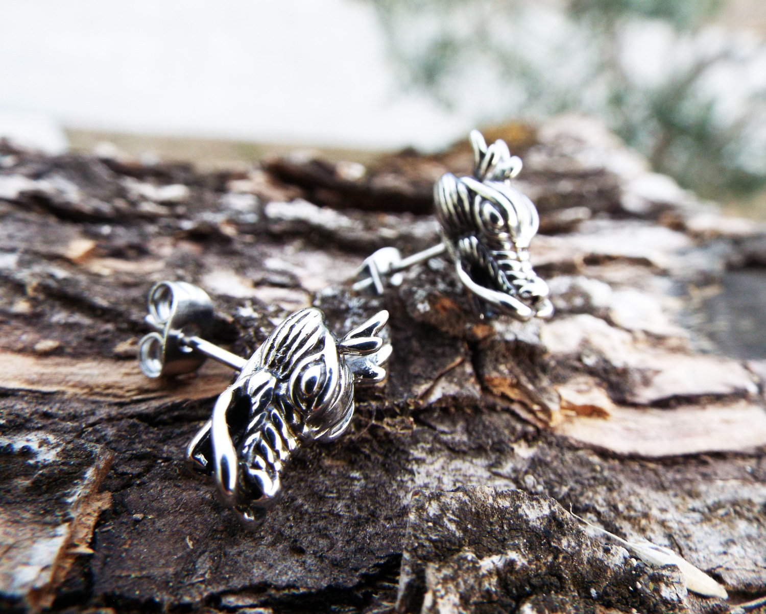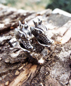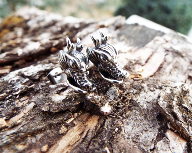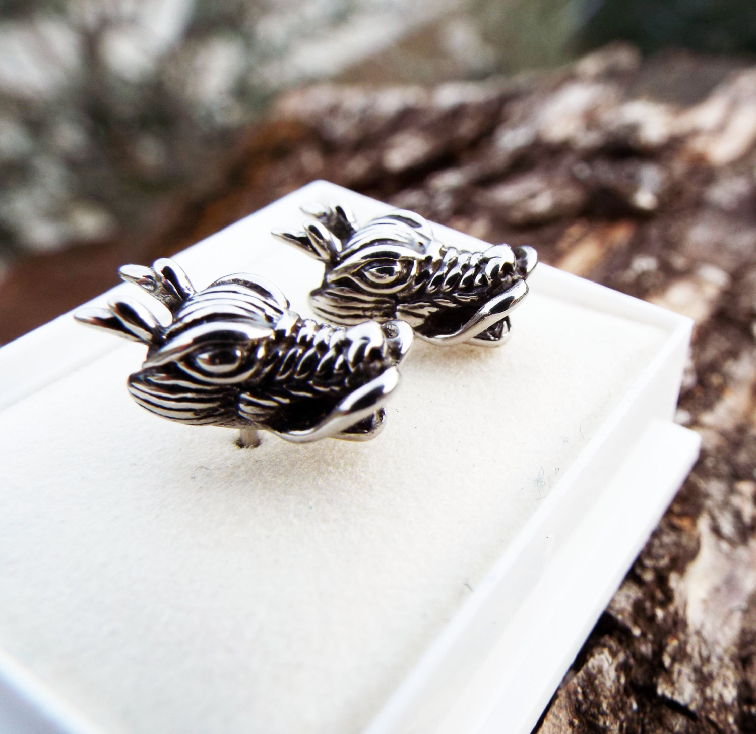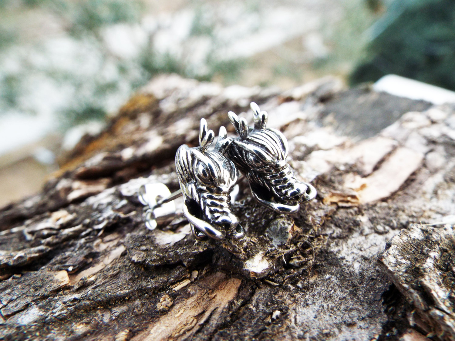 Embrace the dragon's power with this handmade pair of studs! They're made of silver stainless steel which is incredibly solid so one has no fear of breakage or indentation. Also stainless steel never tarnishes and isn't affected by the elements (fresh water, alcohol, air, seawater). The earrings have an easy sterling silver 'butterfly' fastening.The measurements are as follows:
