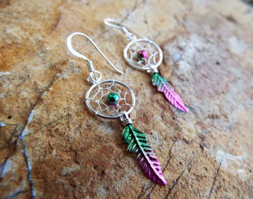 Dreamcatcher Earrings Sterling Silver 925 Handmade Drop Dangle Indian Native American Protection Jewelry