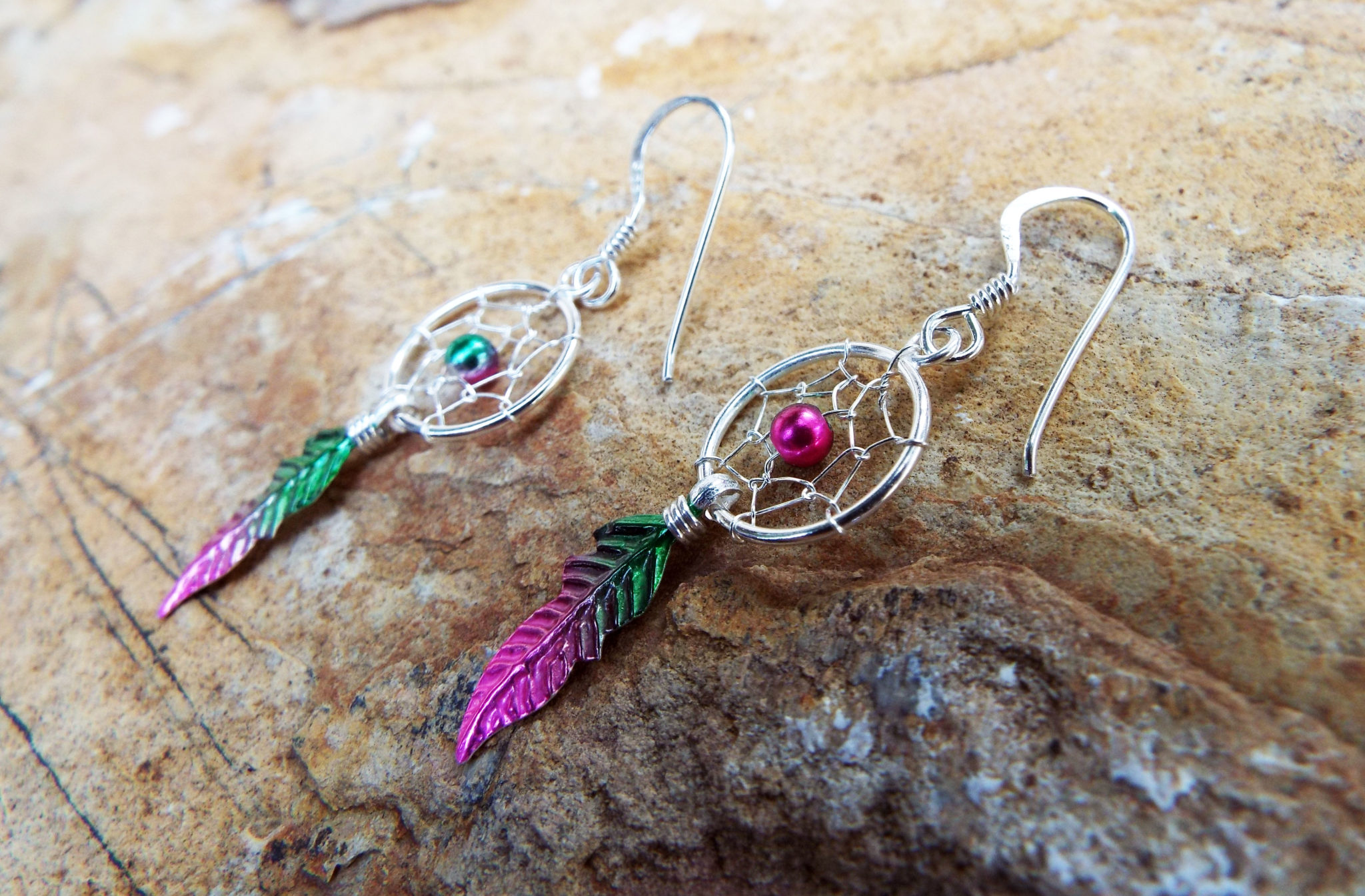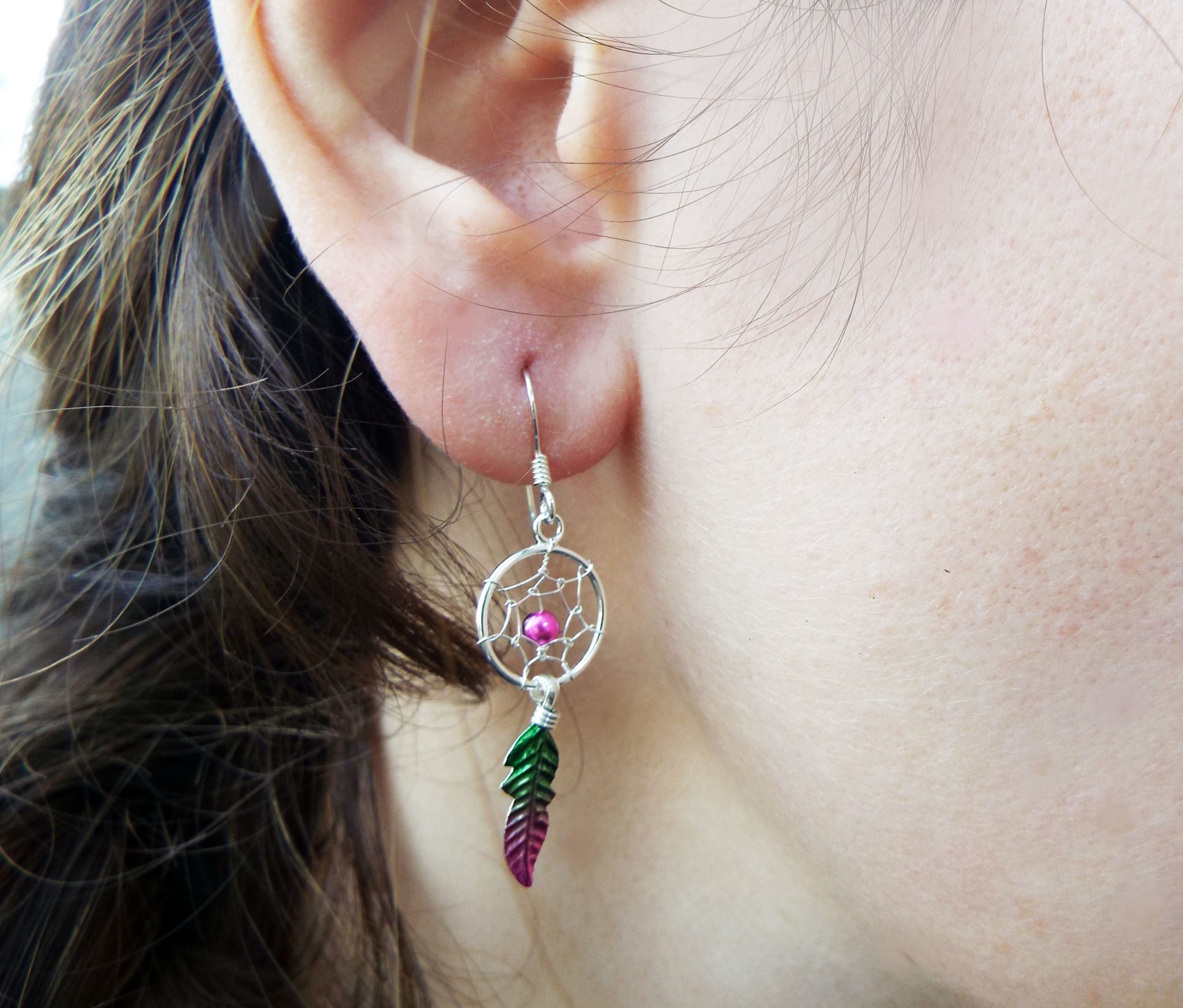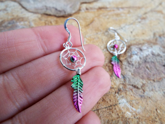 Embrace the protection of the dreamcatcher with this handmade pair of earrings. They’re made of sterling 925 silver and depict a gorgeous delicate dreamcatcher.