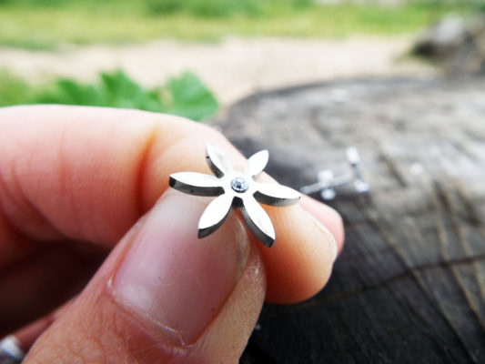 Embrace your flower power this beautiful pair of studs! They’ve been handmade with silver stainless steel which is incredibly solid so one has no fear of breakage or indentation. Also stainless steel never tarnishes and isn’t affected by the elements (fresh water, alcohol, air, seawater). The earrings have an silver stainless steel ‘butterfly’ fastening.
