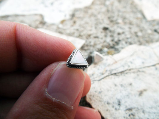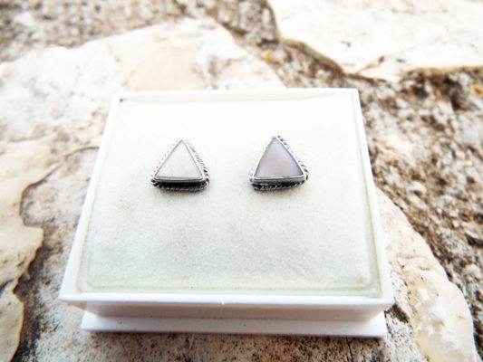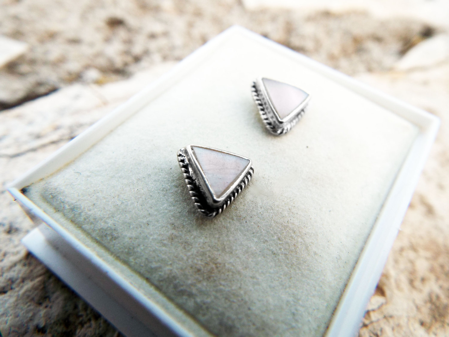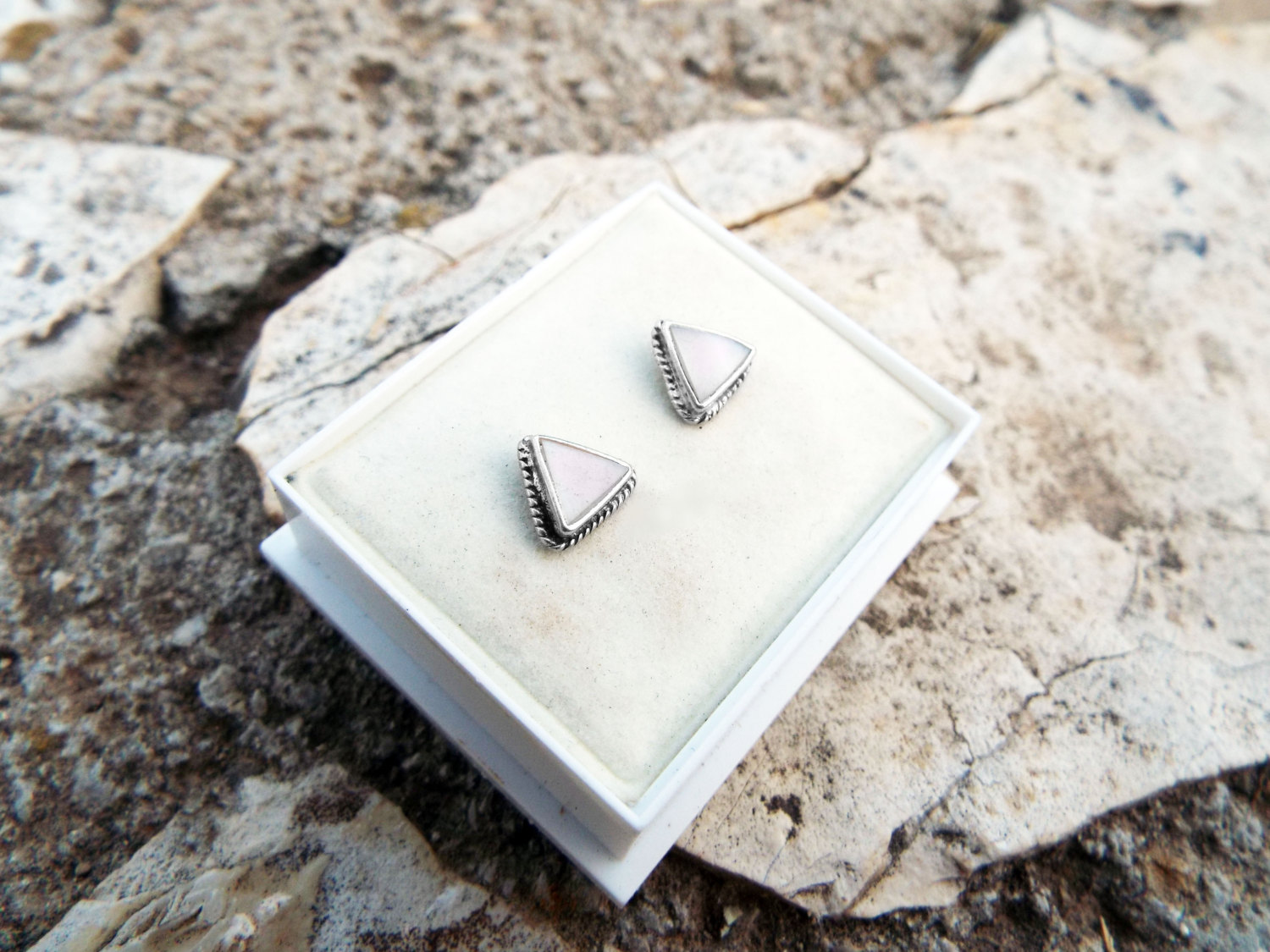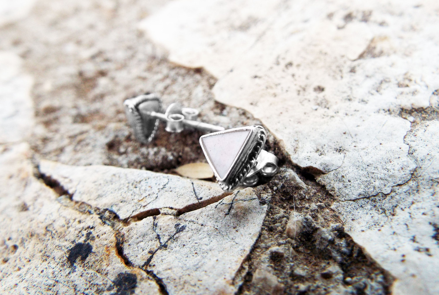 Embrace Fildisi's magical powers with this handmade pair of studs! They're made of sterling 925 silver and have been crafted into sophisticated triangular earrings. The earrings have a sturdy sterling silver 'butterfly' fastening. The measurements are as follows: