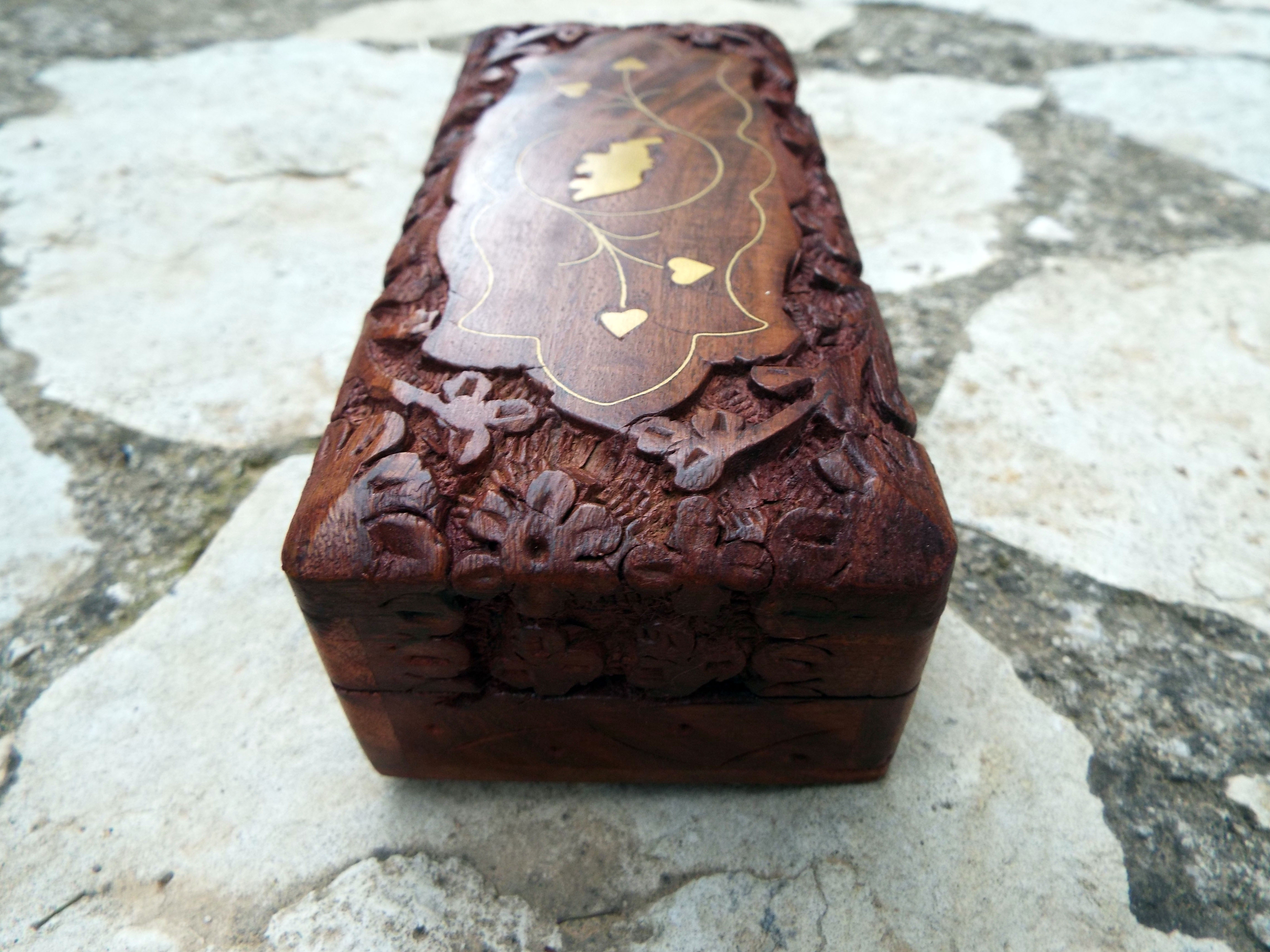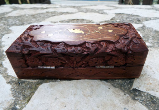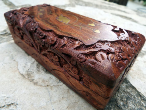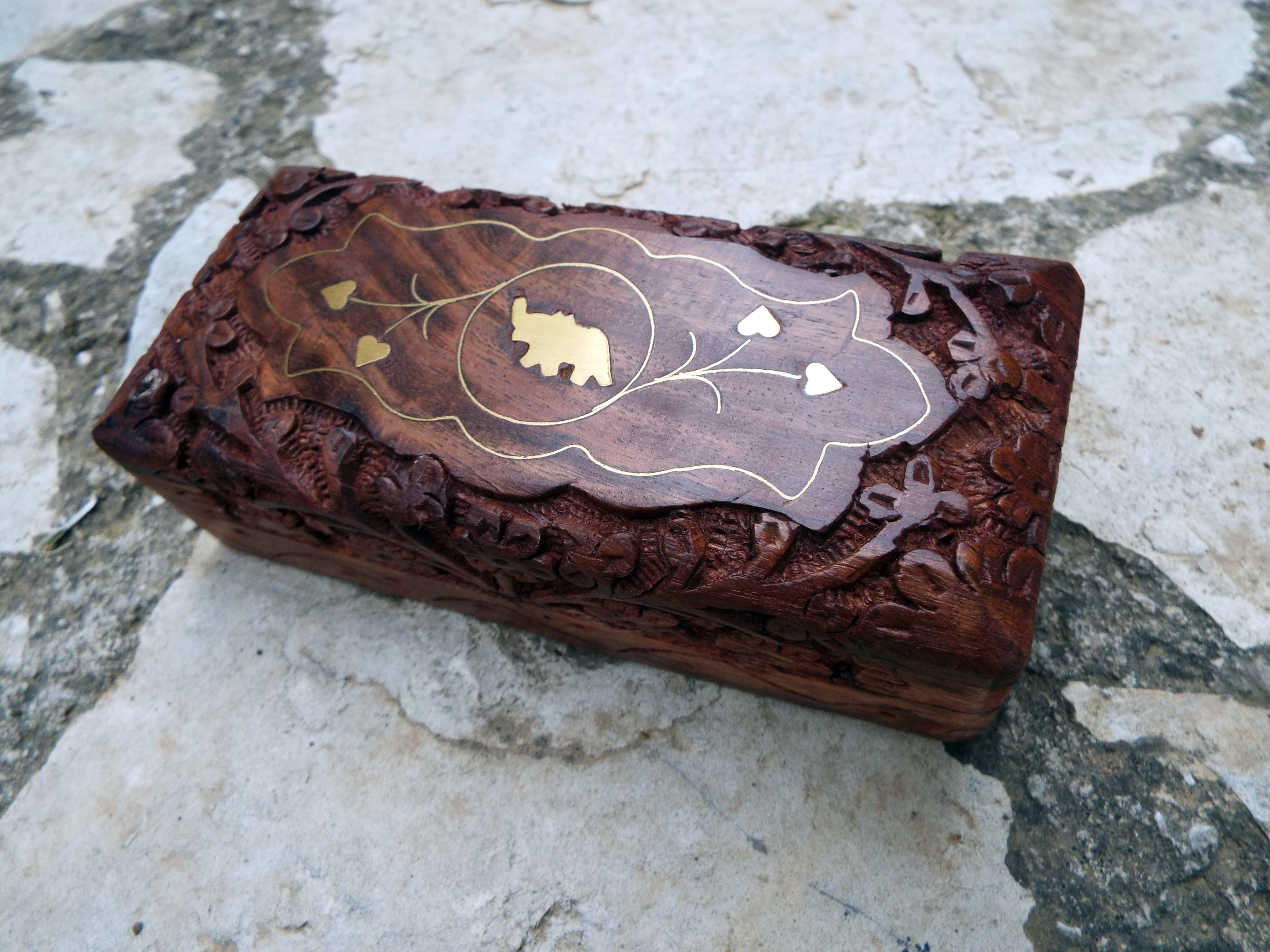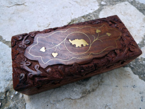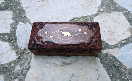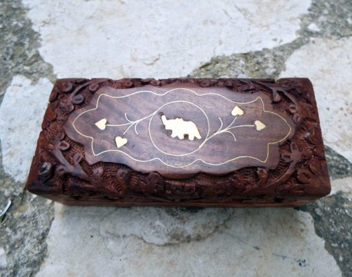 Embrace the symbolic elephant with this handmade box! It’s made of find wood and is hand carved.