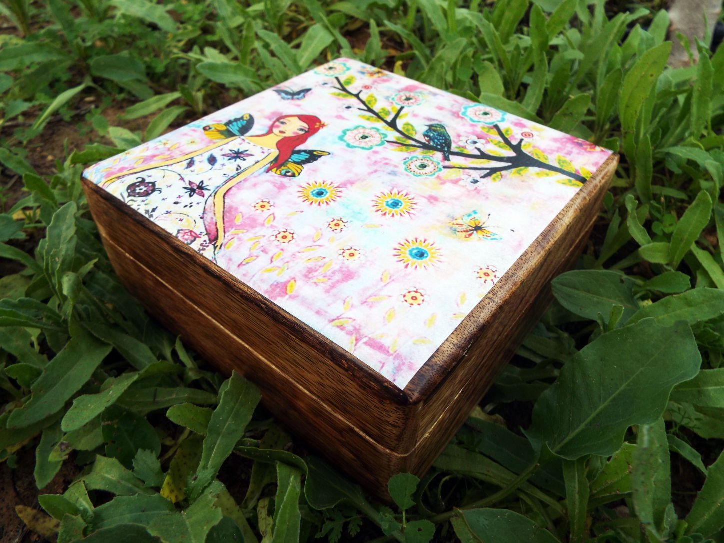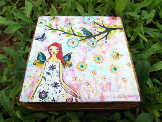 Fairy Box Wooden Carved Handmade Trinket Faerie Art Fantasy Butterfly Mango Tree Wood