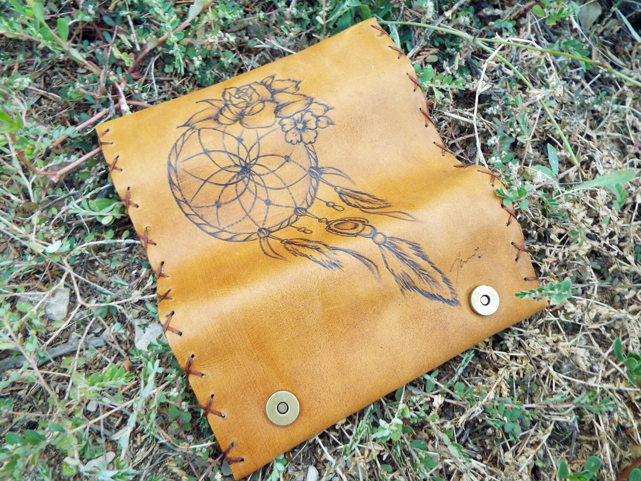 Genuine Leather Handmade Tobacco Pouch Dreamcatcher