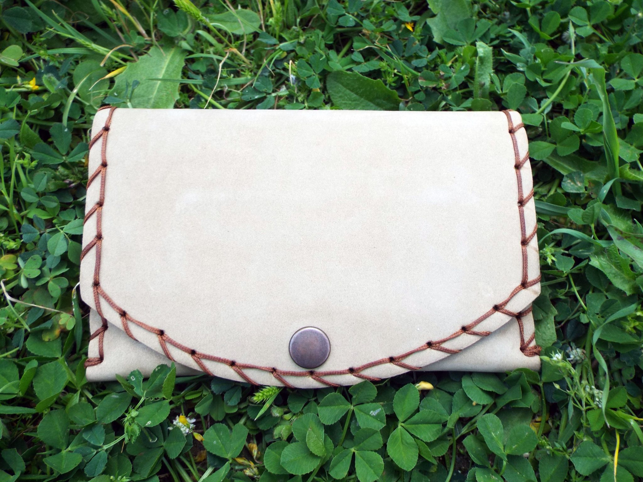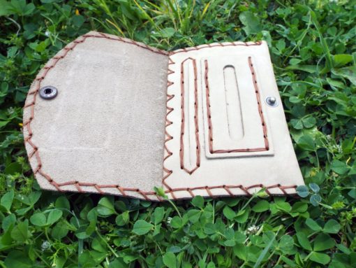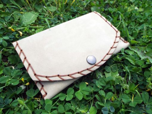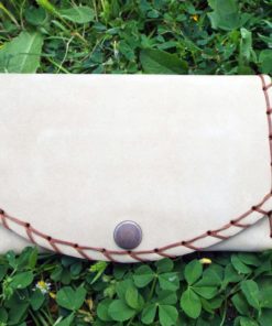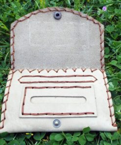This is a hand stitched real genuine leather tobacco pouch with clip-button security.