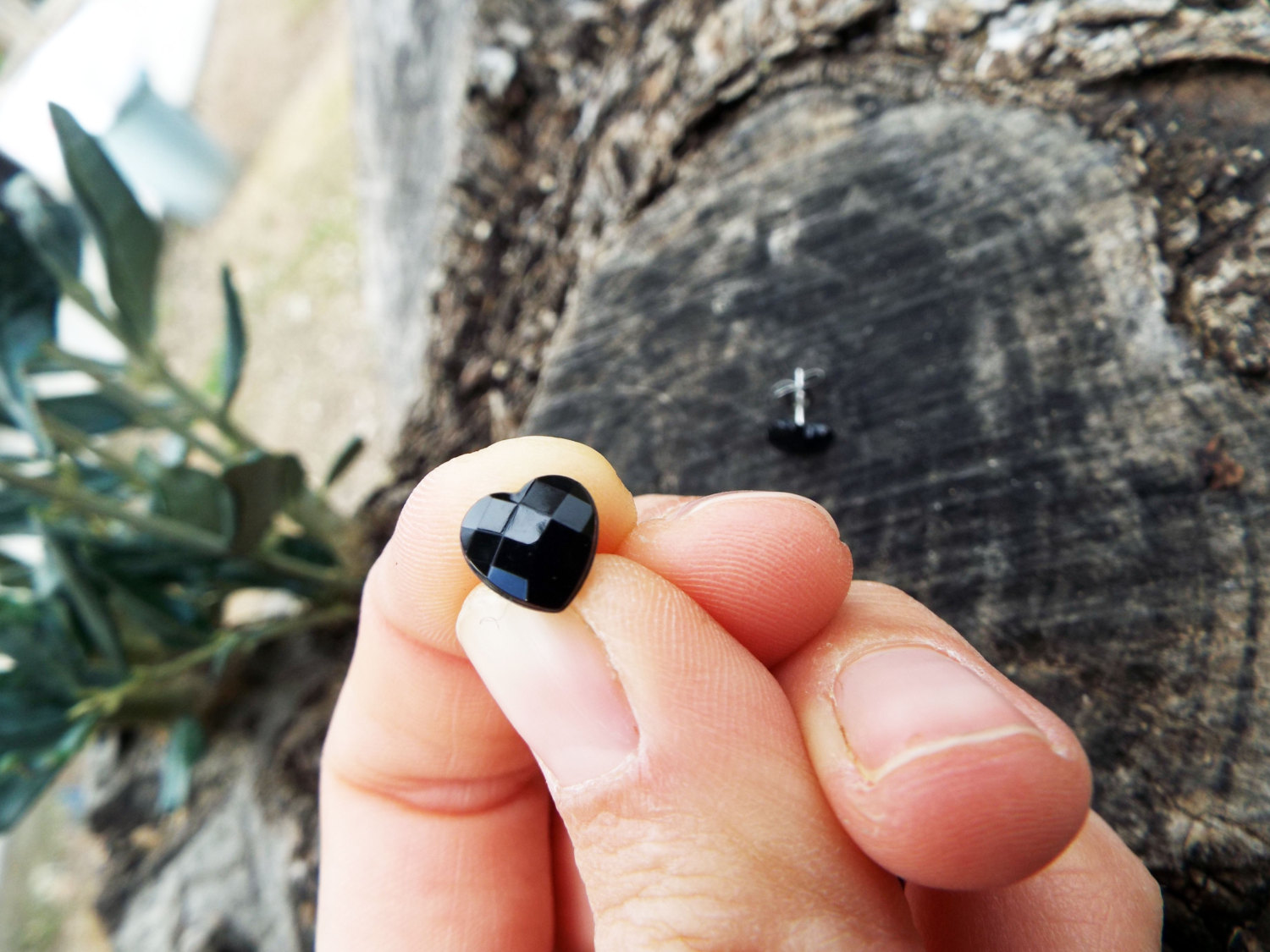 Heart Earrings Studs Black Austrian Crystal Stone Silver Handmade Gothic Dark Jewelry Love Valentine