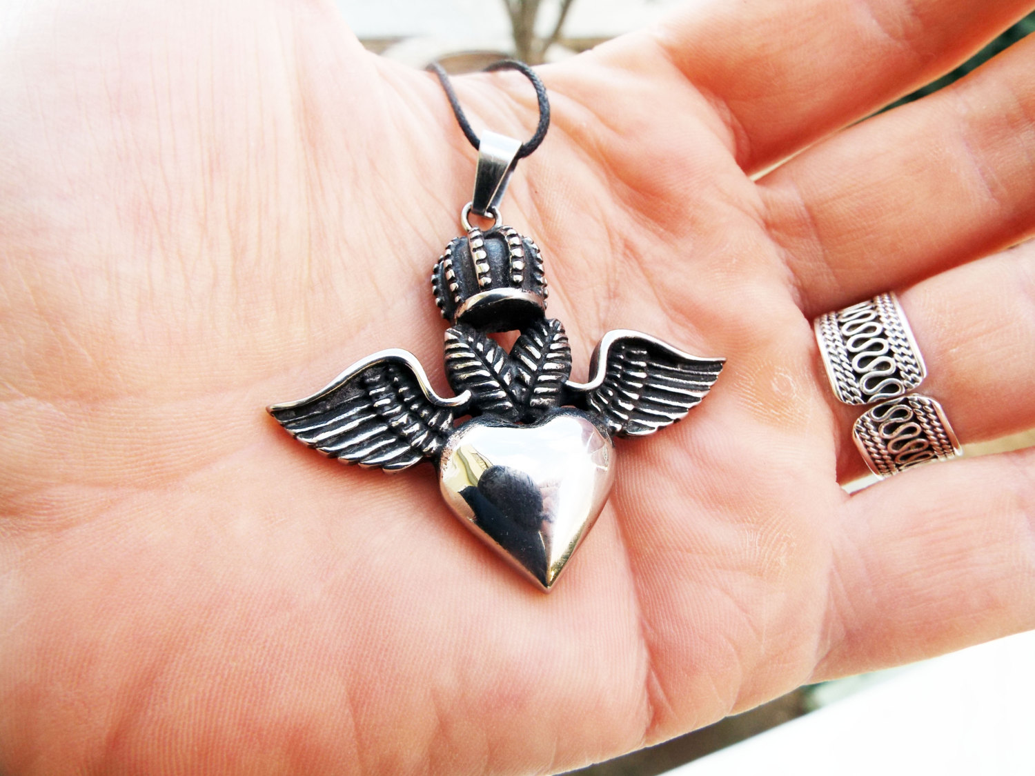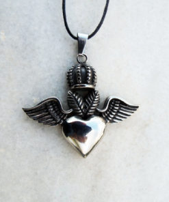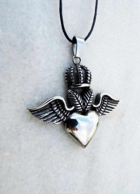 Embrace the heart's love with this beautiful handmade pendant! The Celtic Claddagh heart symbolises compassion, love and friendship and the crown depicts loyalty in relationships. Wings often provide protection from above – from our protective angels. The measurements are as follows: