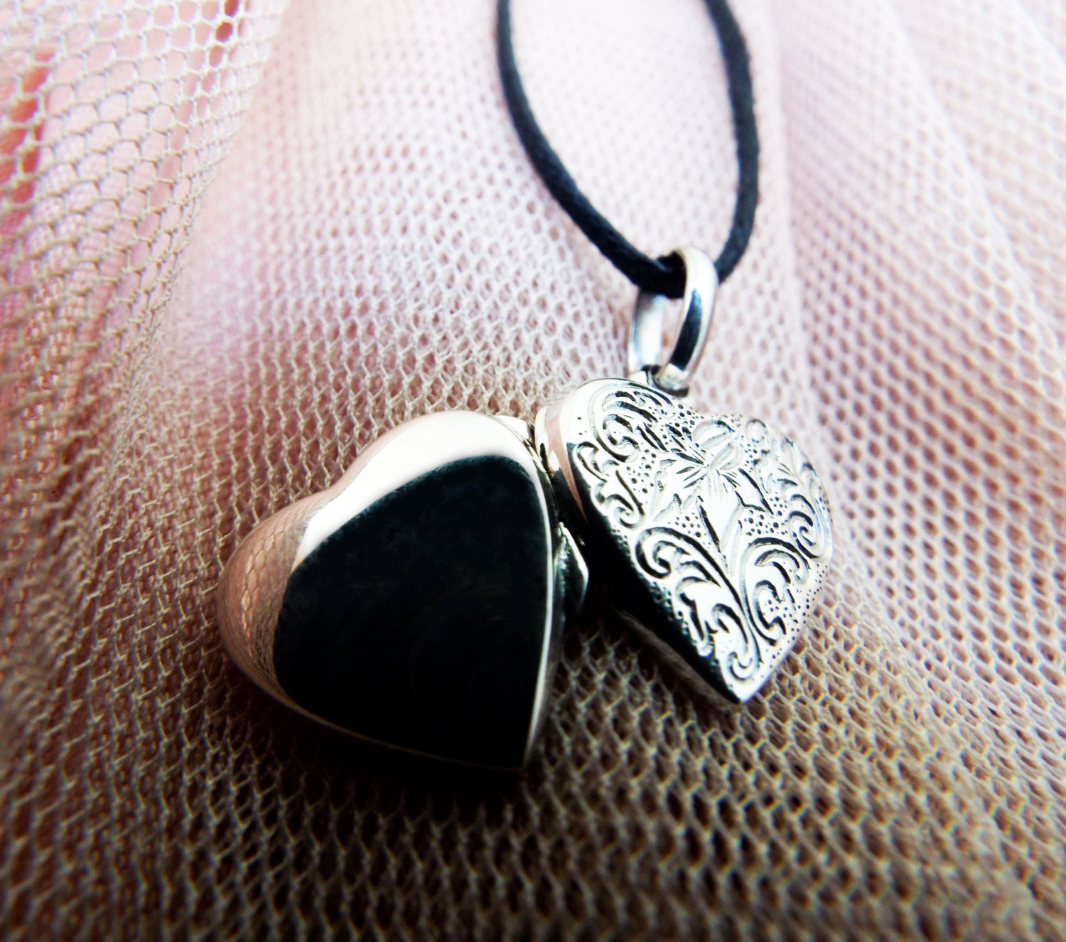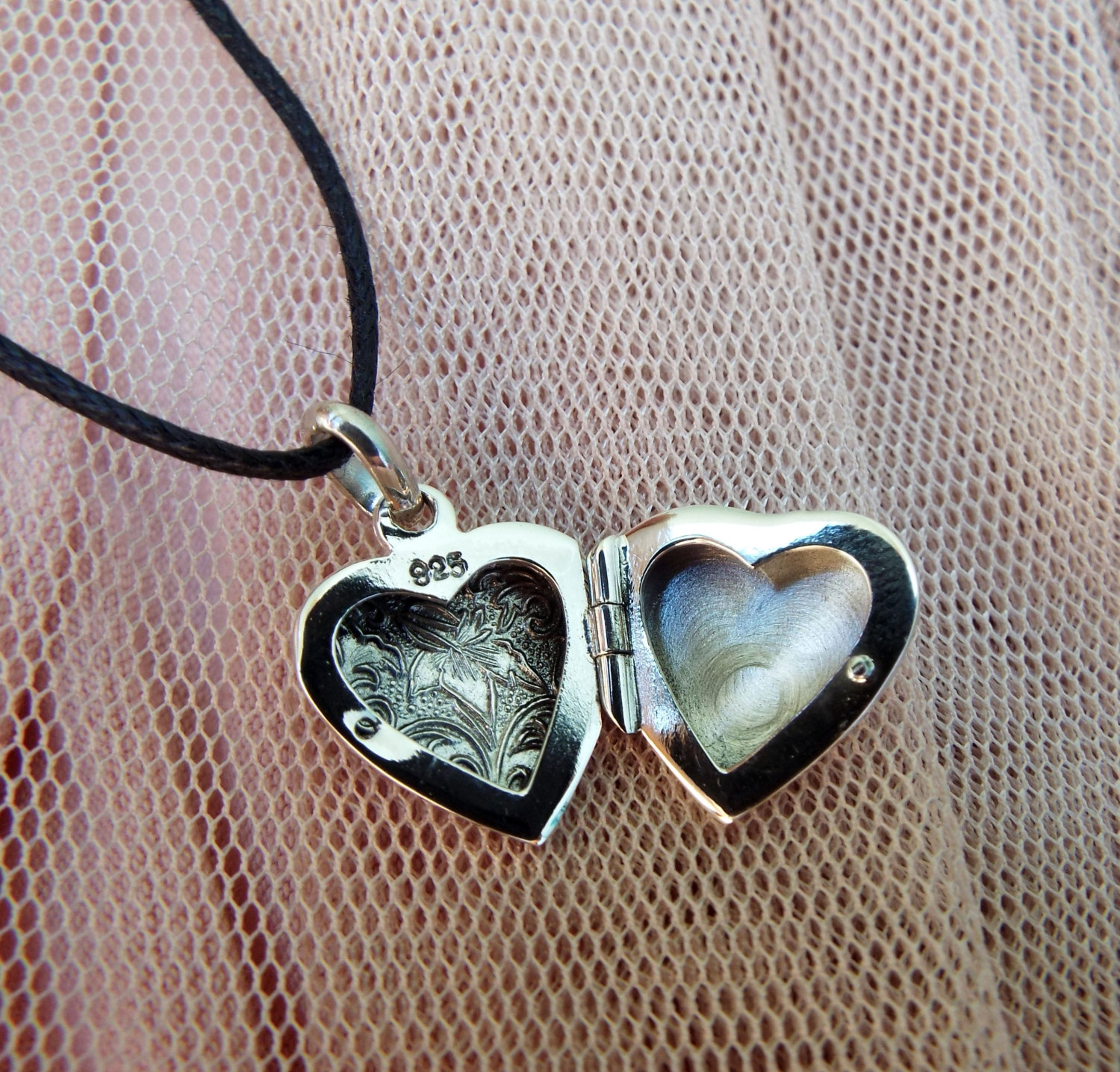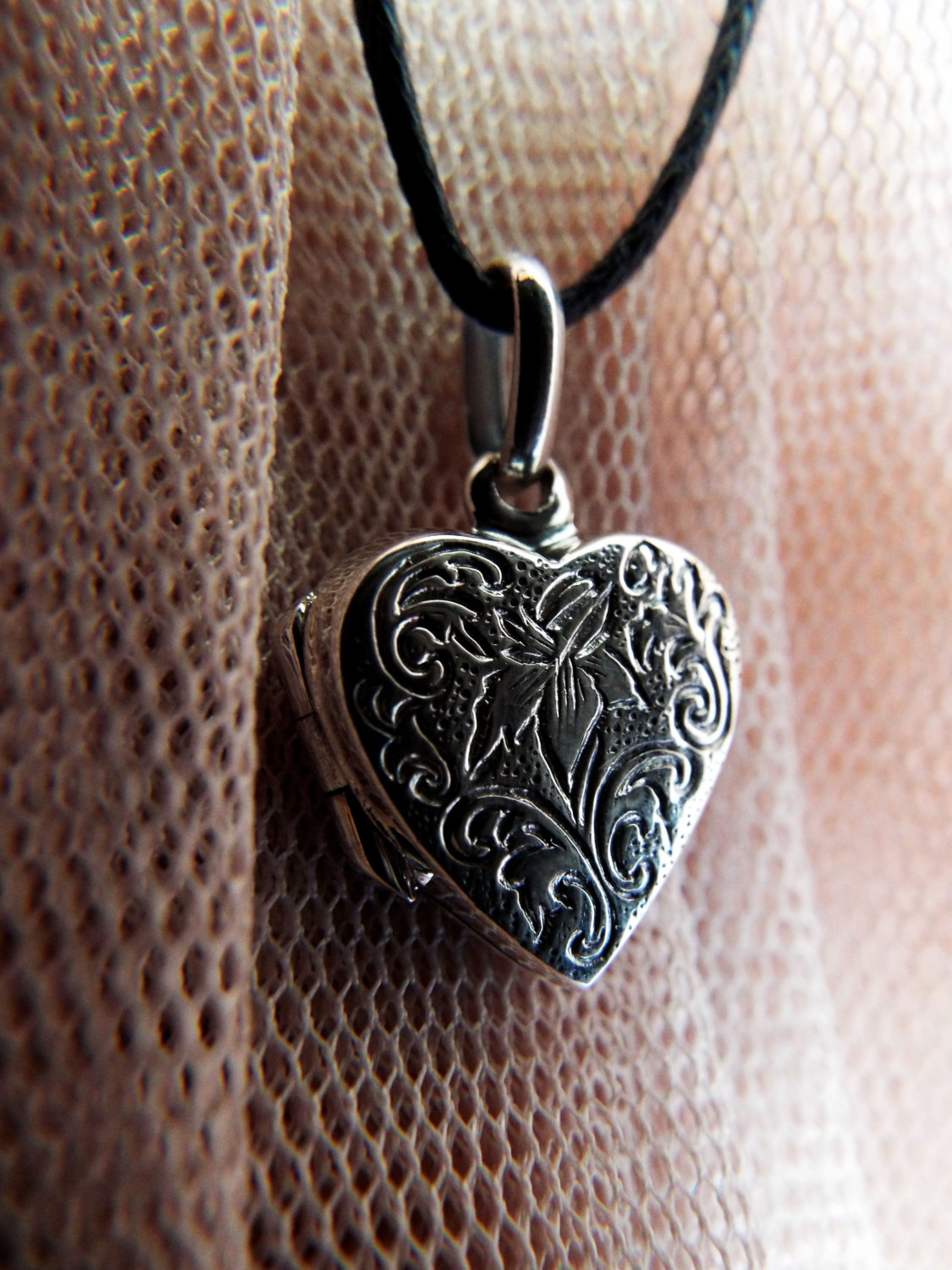 Declare your love with this beautiful handmade heart locket! It's made of sterling 925 silver and has filigree floral patterns with intertwining swirls. This would make the perfect gift for your loved one. Also, it's perfect for storing memorable photographs and small treasures.The measurements are as follows: