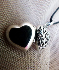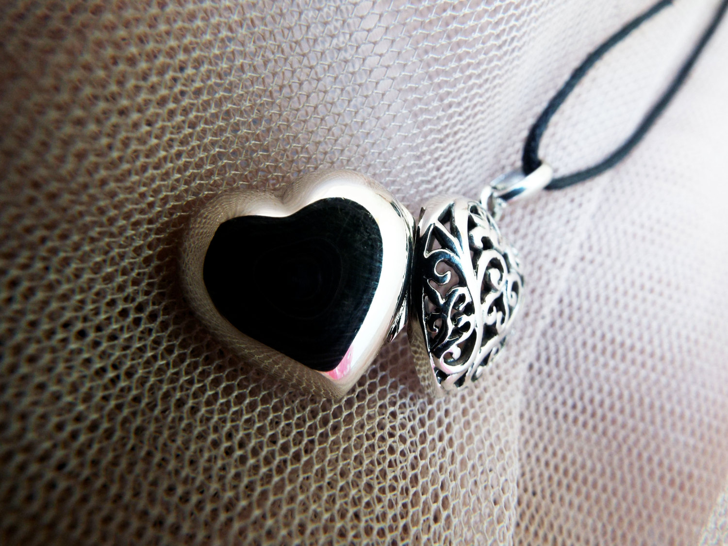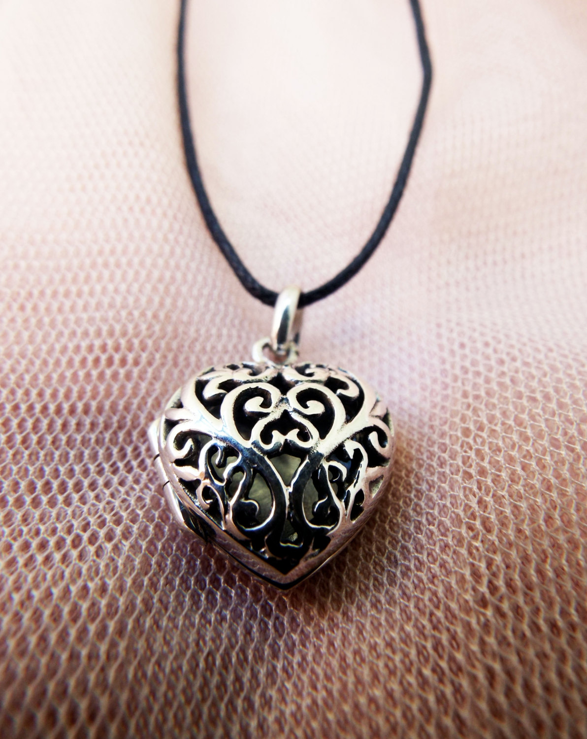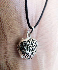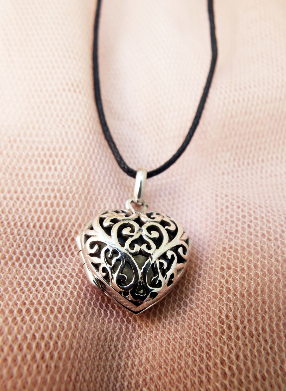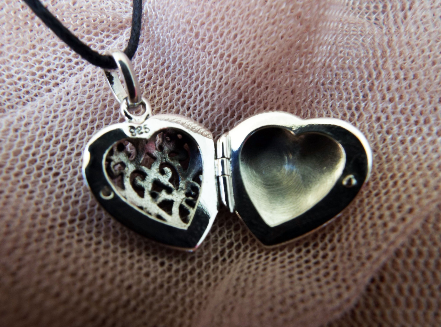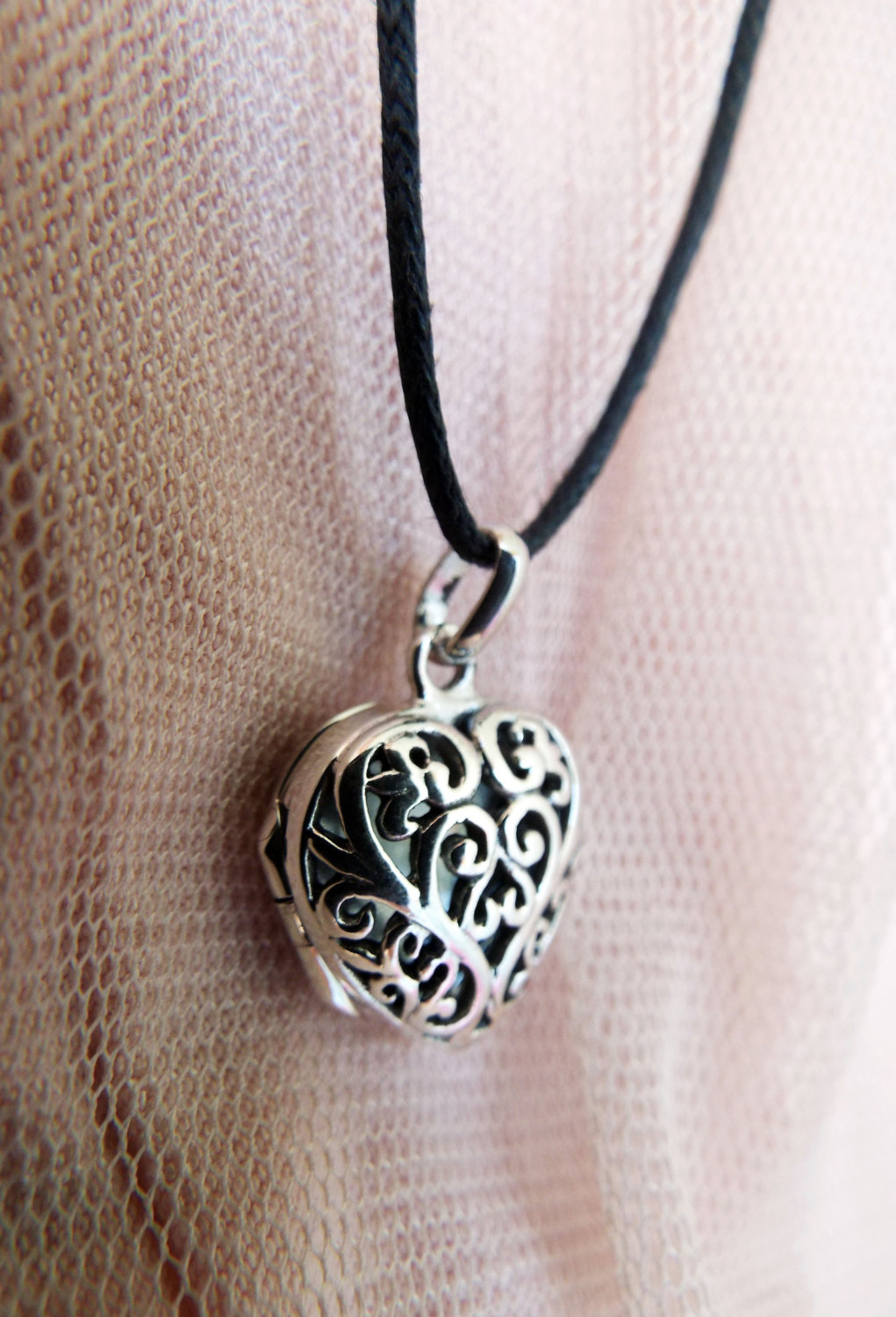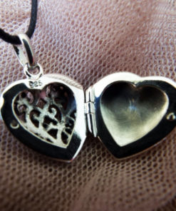 Declare your love with this beautiful handmade heart locket! It's made of sterling 925 silver and has a vintage/antique style. The filigree floral patterns are see-through, making it possible for one to see the hidden memory kept locked inside. The measurements are as follows:
