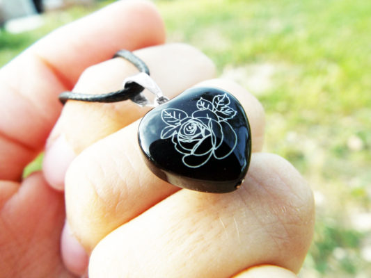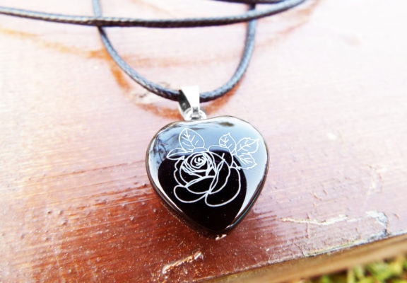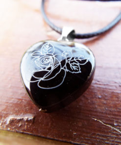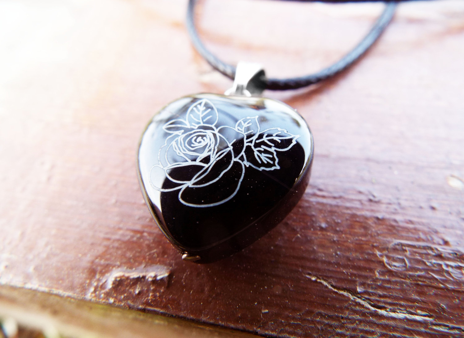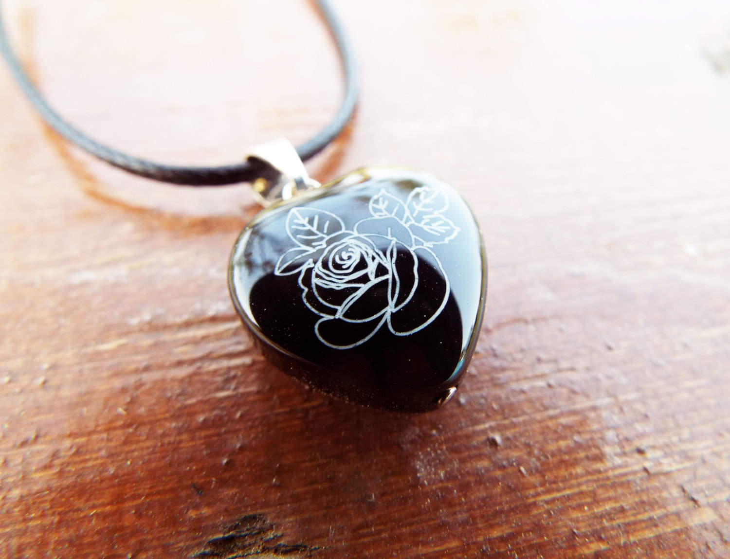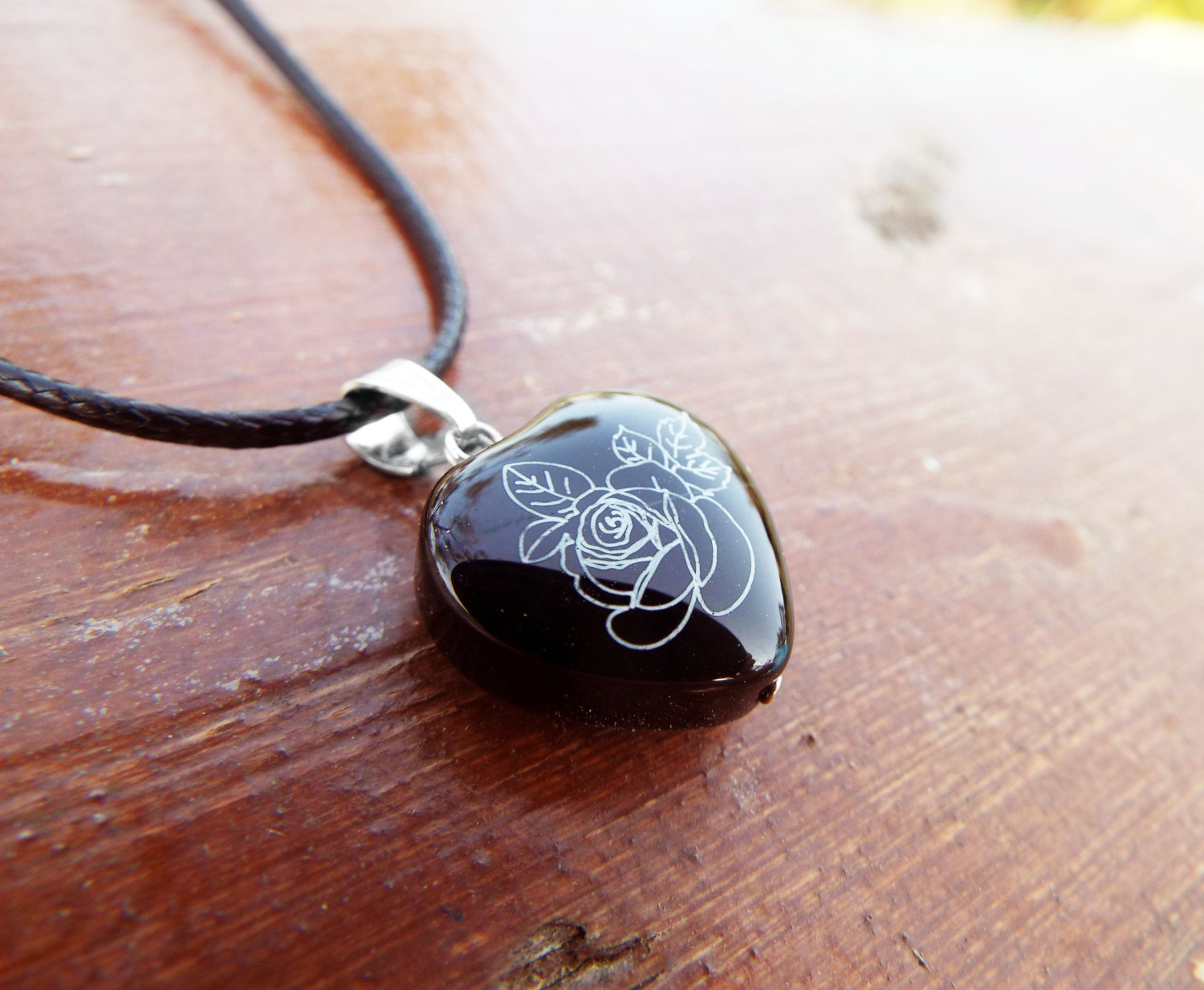 Declare your love with this beautiful handmade heart! It's made of sterling 925 silver and Black Onyx. A beautiful intricate rose has been hand carved on the surface. This would make the perfect gift for your loved one. The measurements are as follows: