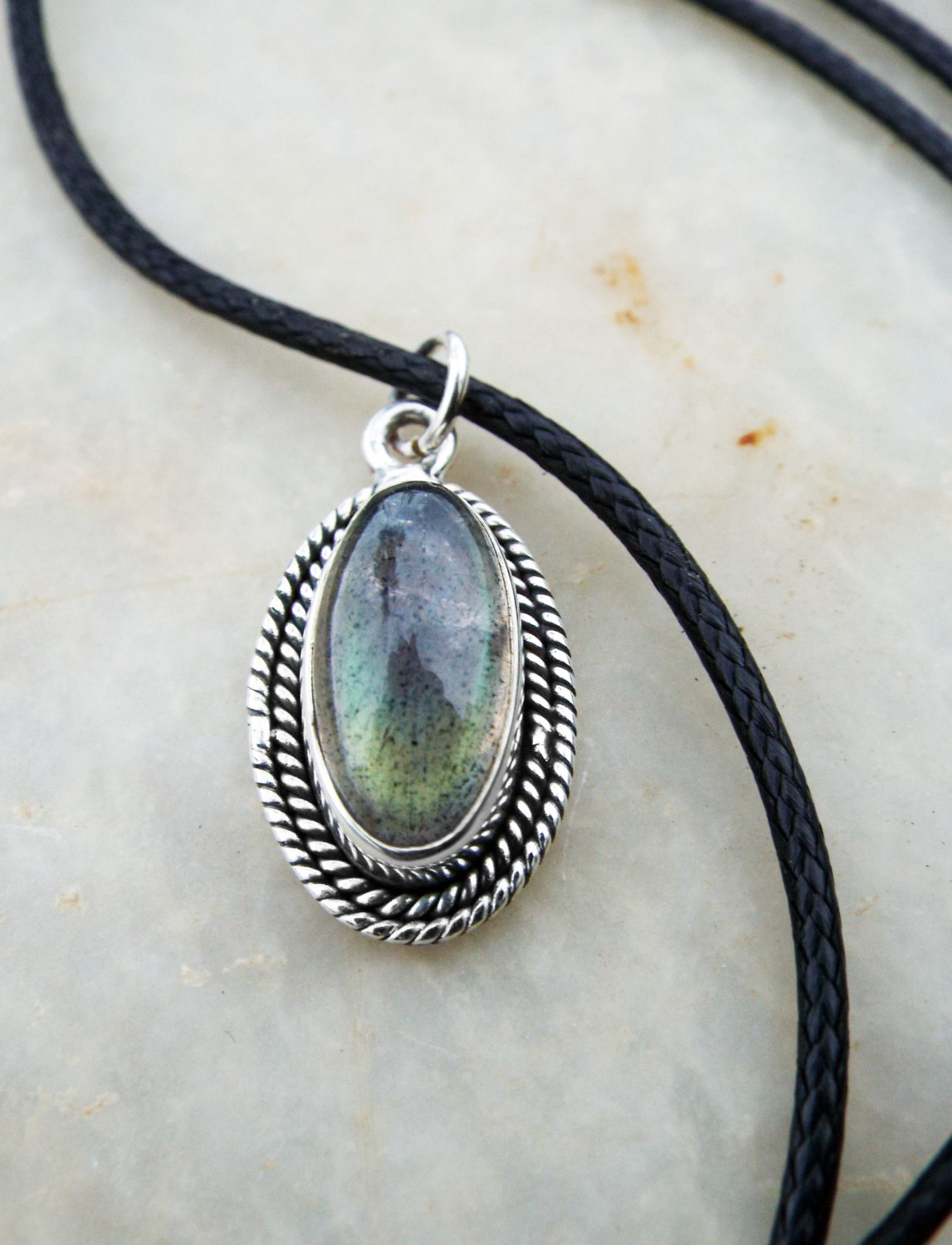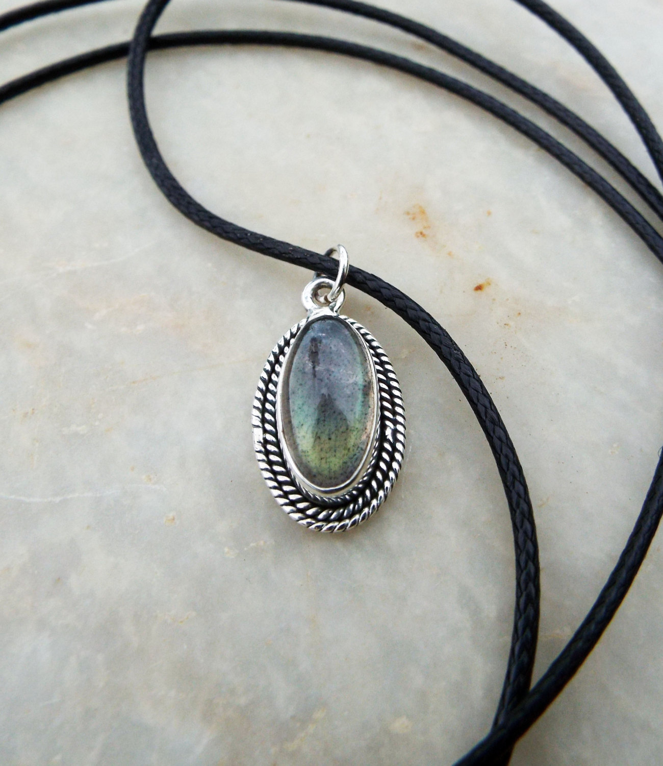 Embrace the magic of the labradorite with this handmade piece! It's made of sterling 925 silver which has been crafted into a graceful oval pendant.
