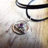 The piece will be sent with an adjustable black cotton strap but it also looks great with a silver chain.