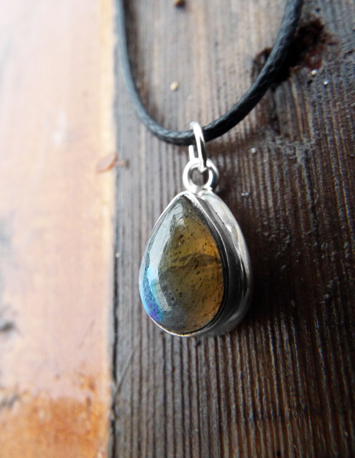 Embrace the magic of the labradorite with this handmade piece! It’s made of sterling 925 silver which has been crafted into a graceful tear drop.