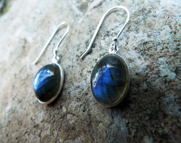 Embrace labradorite’s amazing energies with this beautiful pair of drop earrings! They’ve been handmade with sterling 925 silver and lovely labradorite which changes colour in the light.