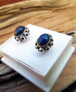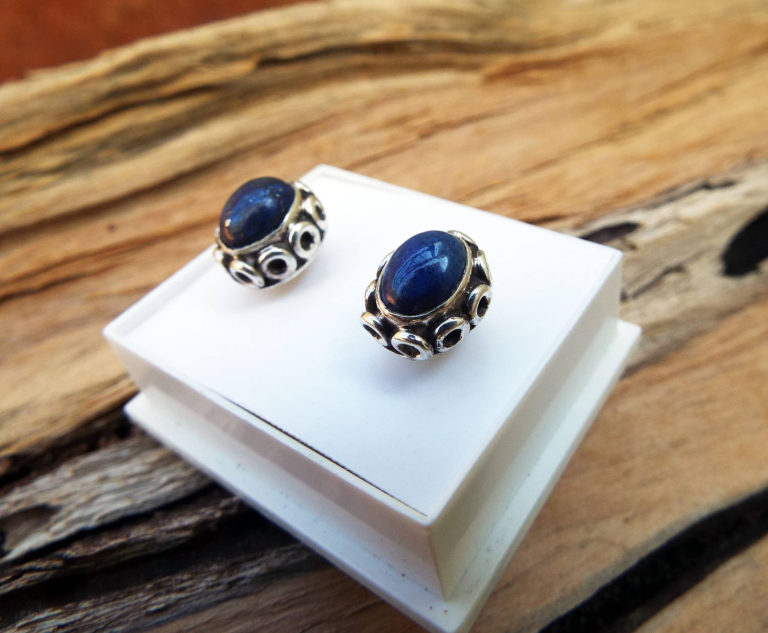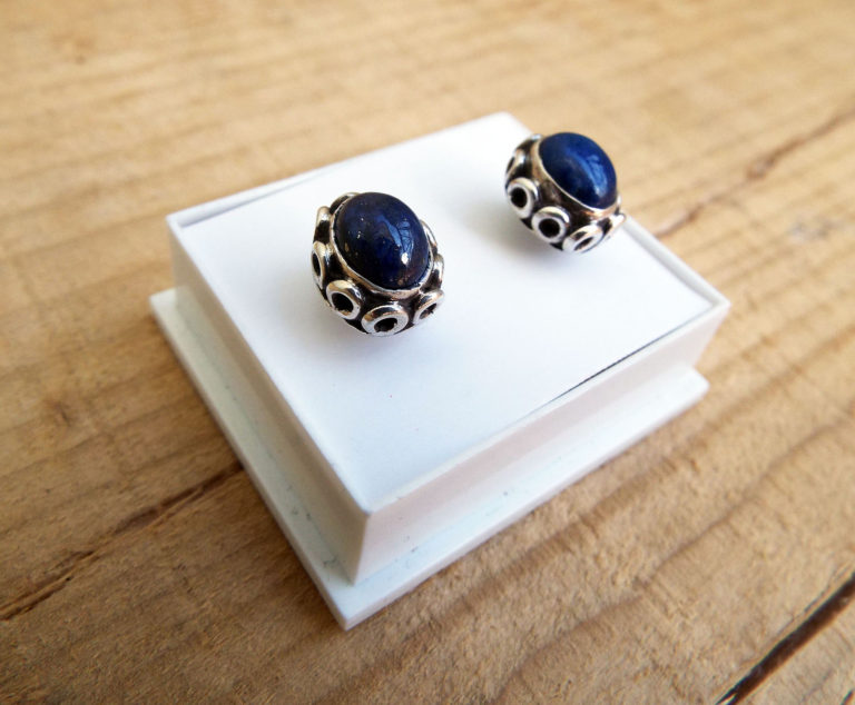 Embrace lapis lazuli’s amazing energies with this handmade pair of studs. They have been crafted into a gothic and antique design, made of sterling 925 silver. The earrings have an easy sterling silver ‘butterfly’ fastening. The measurements are as follows:
