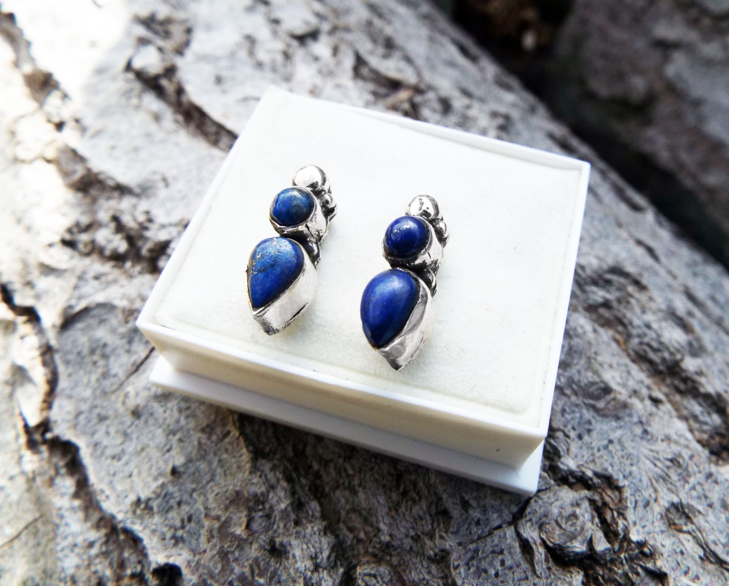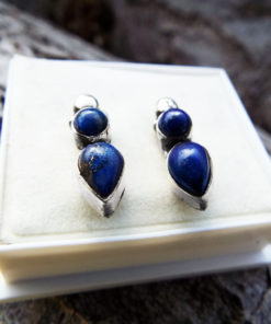 Embrace lapis lazuli’s amazing energies with this handmade pair of studs. They have been crafted into a gothic and antique design, made of sterling 925 silver. The earrings have an easy sterling silver ‘butterfly’ fastening. The measurements are as follows: