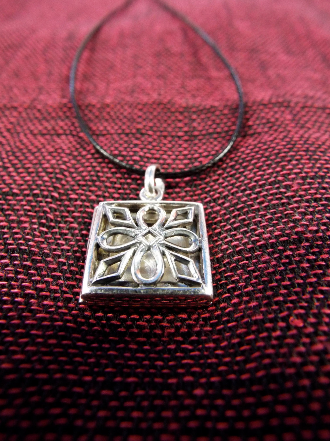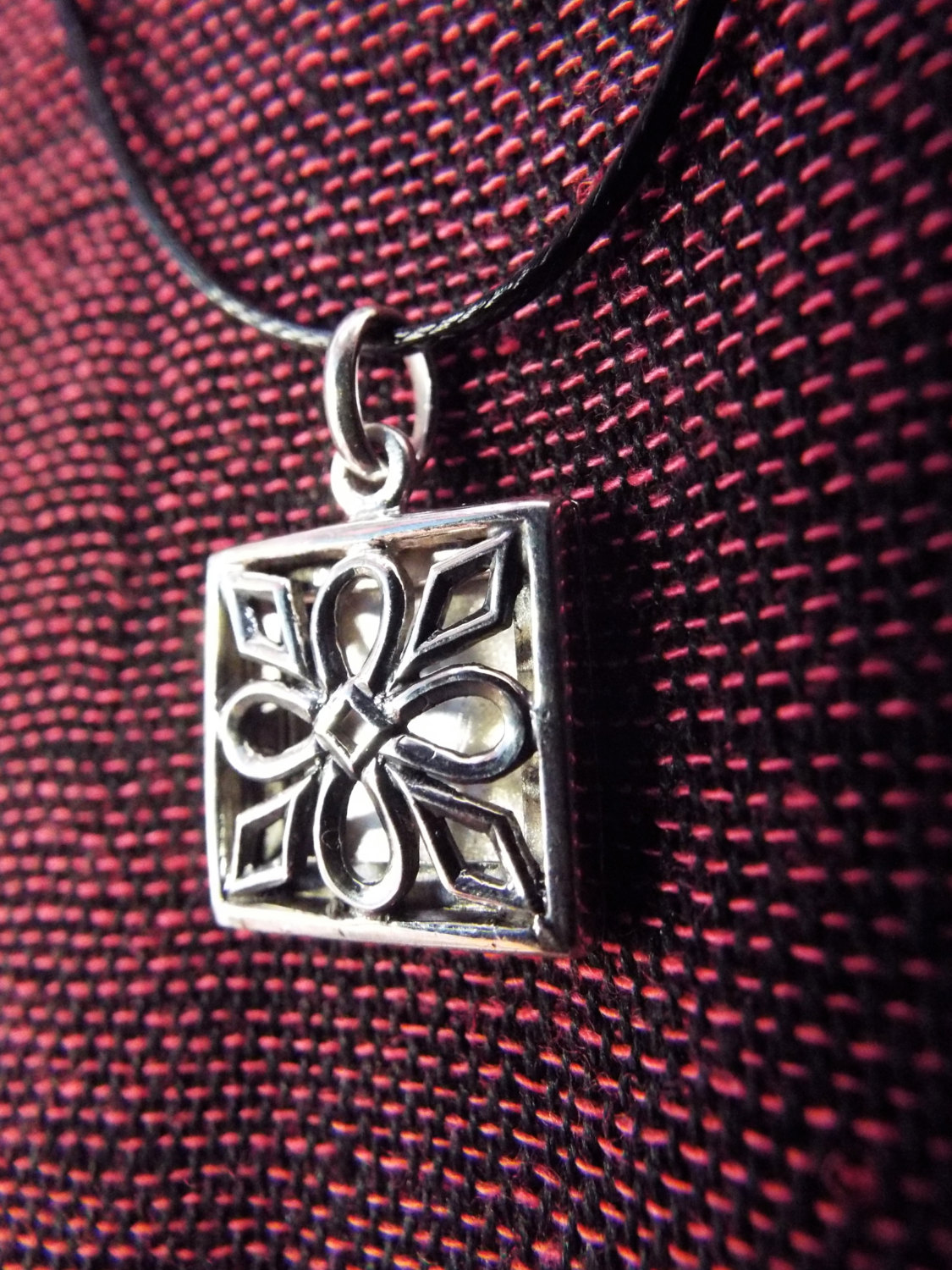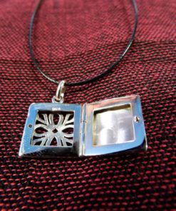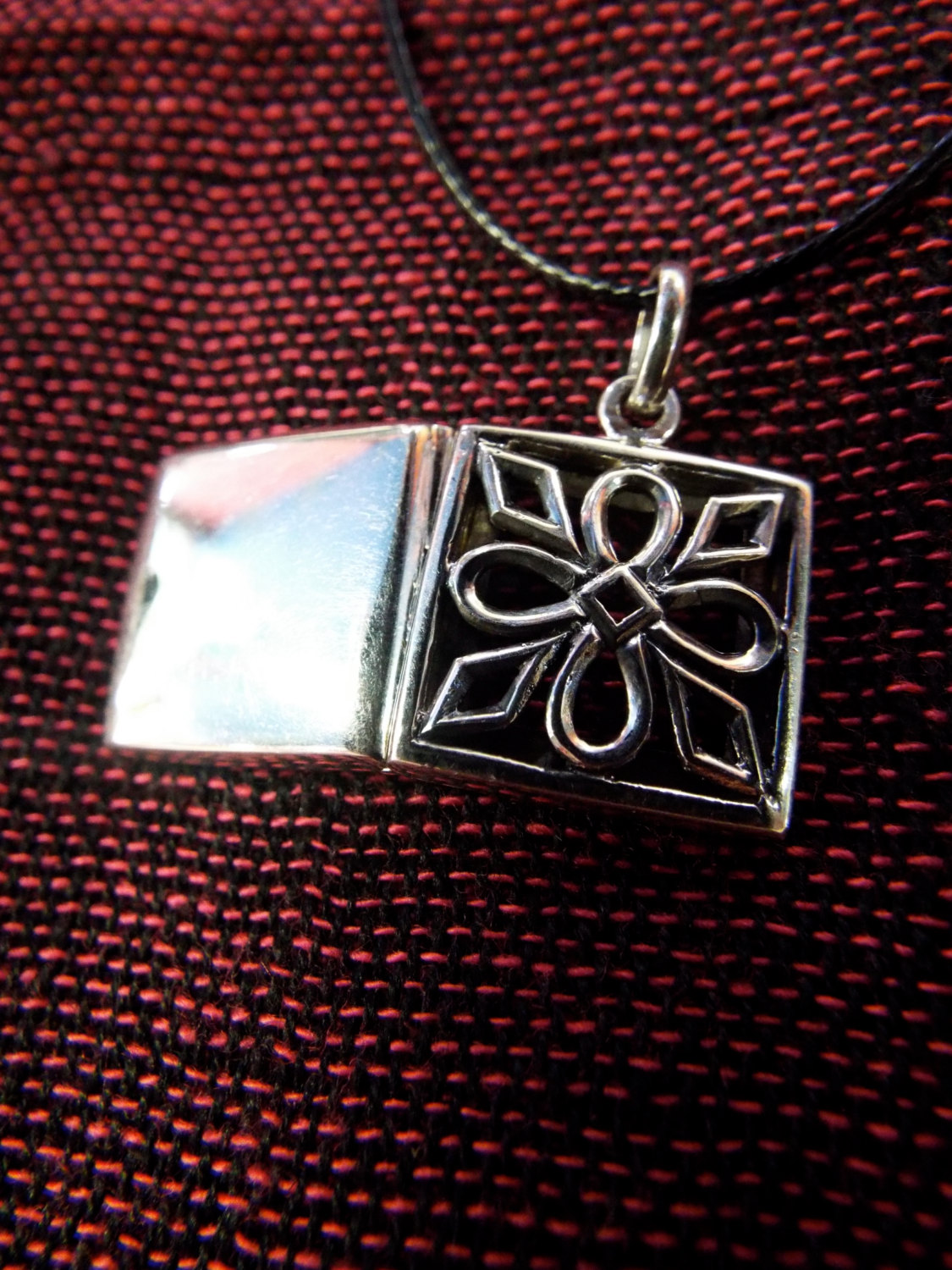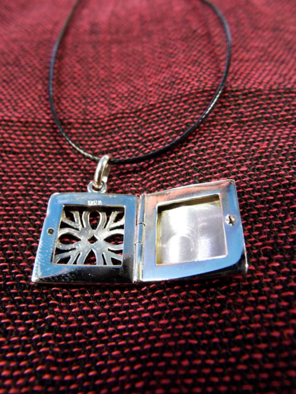This handmade pendant is made of sterling 925 silver and has a vintage/antique style. The filigree floral patterns are see-through, making it possible for one to see the hidden memory kept locked inside. The measurements are as follows: