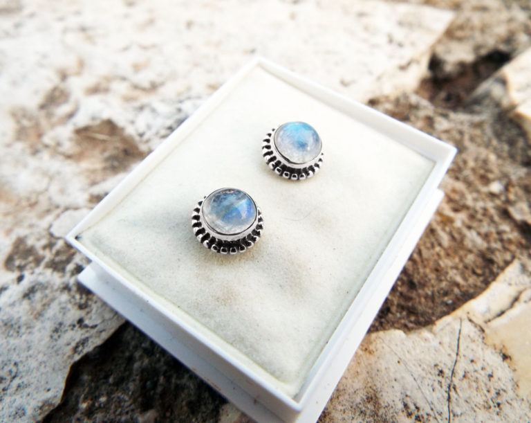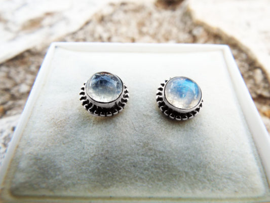 Embrace moonstone’s magical energies with this handmade pair of studs! They’ve been handmade with sterling 925 silver and brilliant moonstone. The earrings have an easy sterling silver ‘butterfly’ fastening.